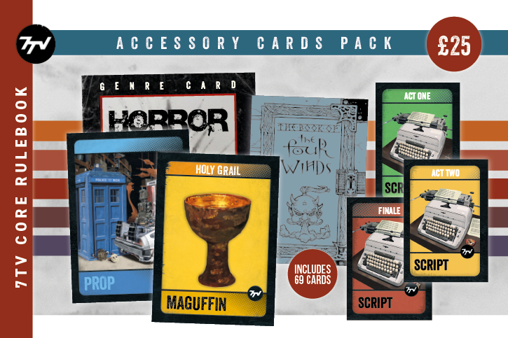 Upgrade your tabletop with this deluxe set of printed accessory cards designed to be used with the 7TV Core Rulebook.