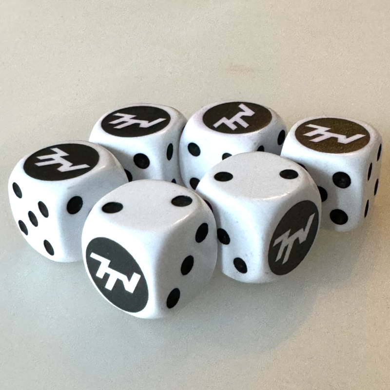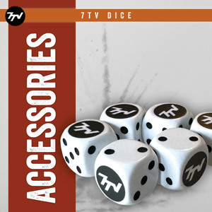Show your allegiance to your favourite set of cinematic skirmish rules with these cunning 7TV Dice. Each set has 6 white x 16mm dice with recessed spots, with the 7TV logo on the 6 face.