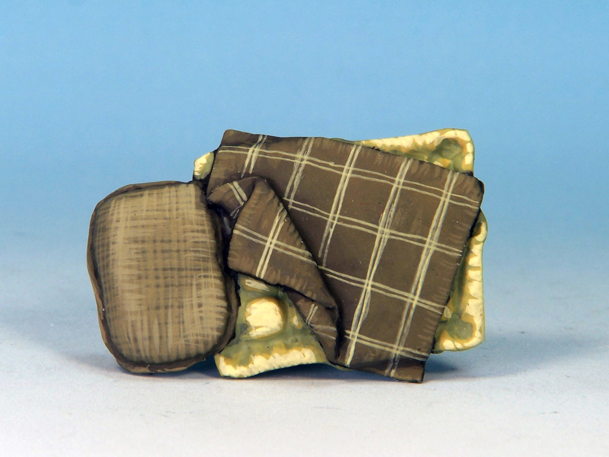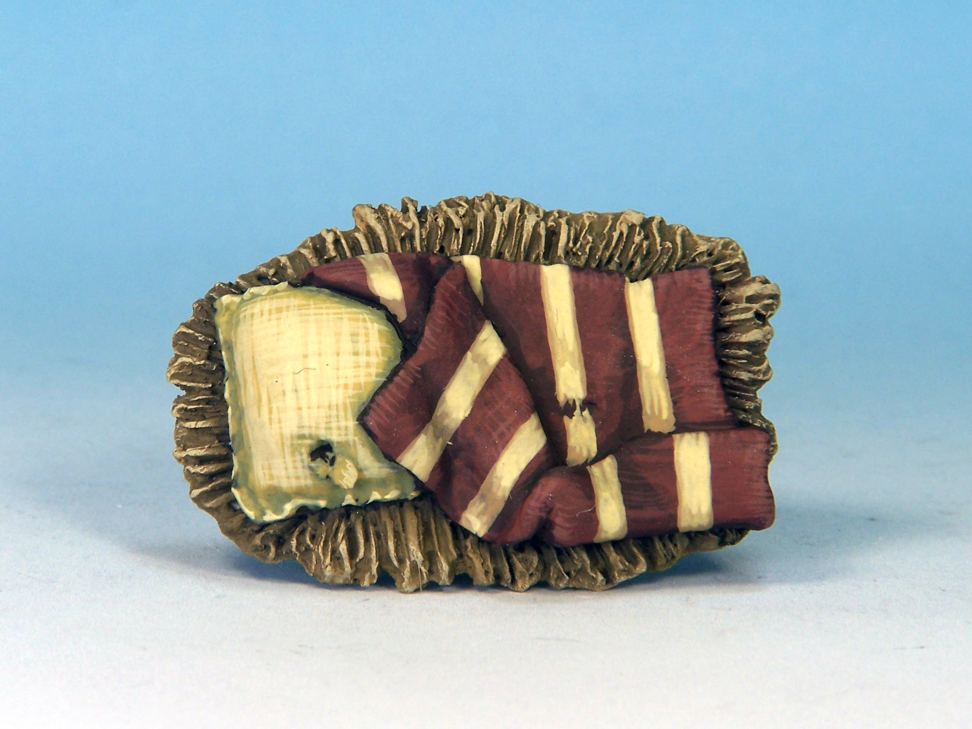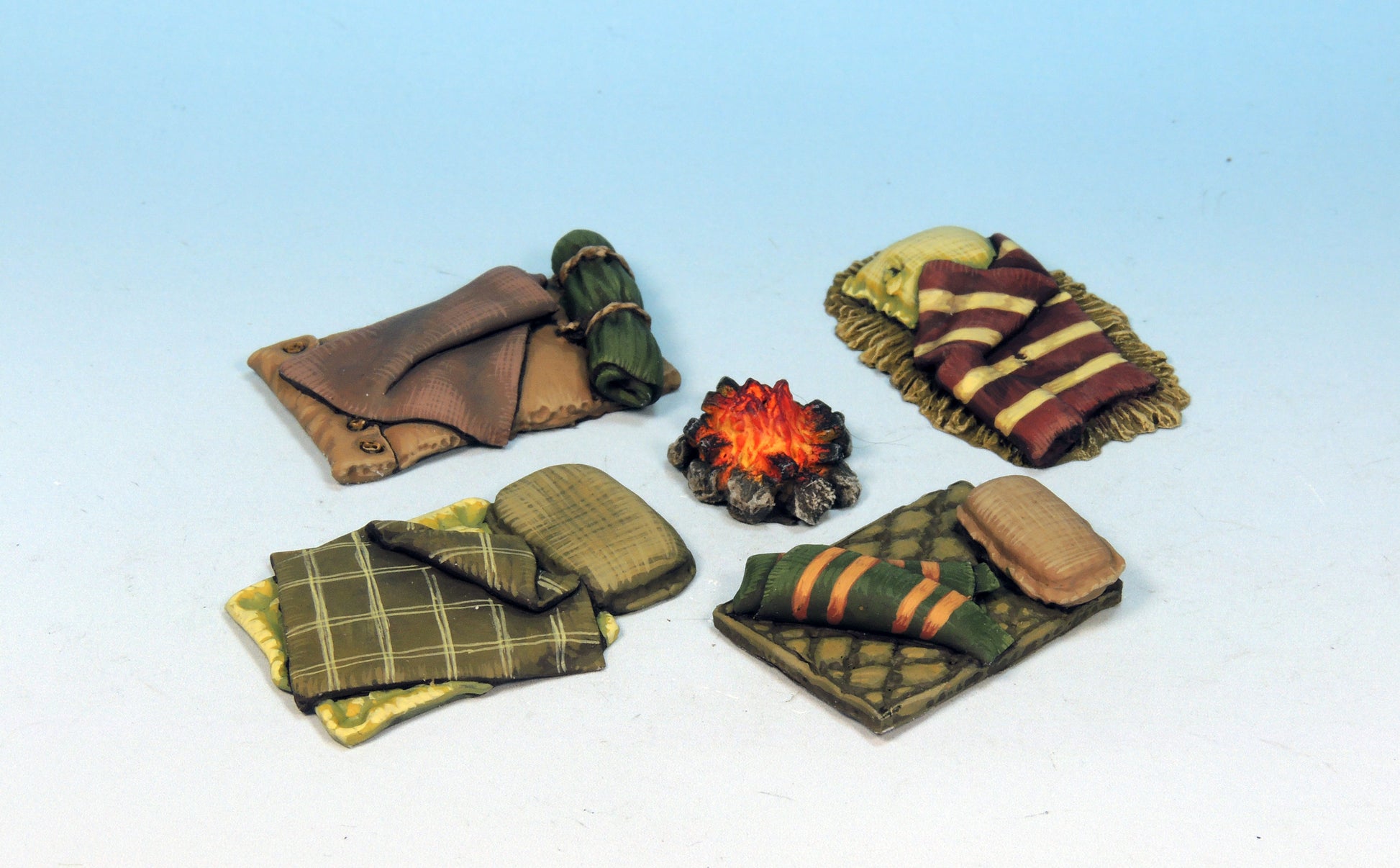 Includes four bedrolls and one campfire. This five piece scenic set was sculpted by Iain Gonzalez. Cast in resin. Supplied unpainted. Includes three pieces.