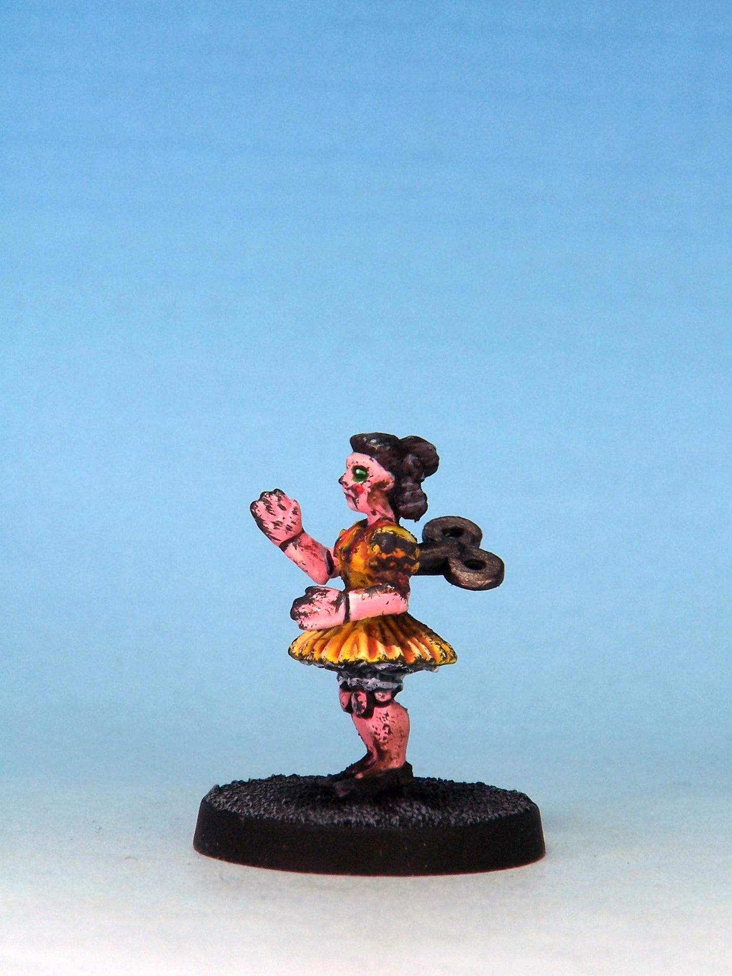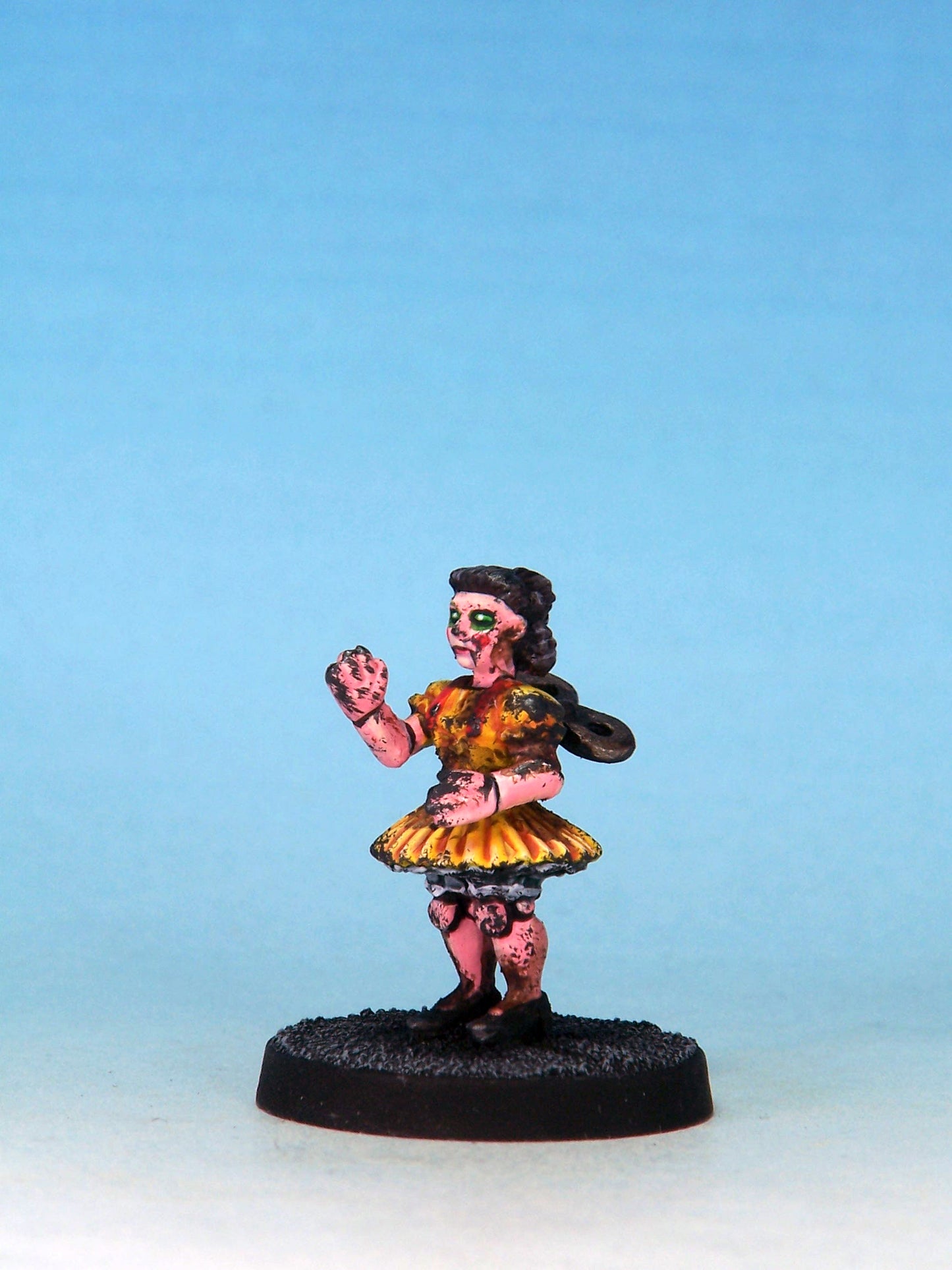 Sculpted by Andrew May. Cast in white metal. Painted for display by Mystic Spirals. Supplied unpainted and with a 25mm round slottabase.