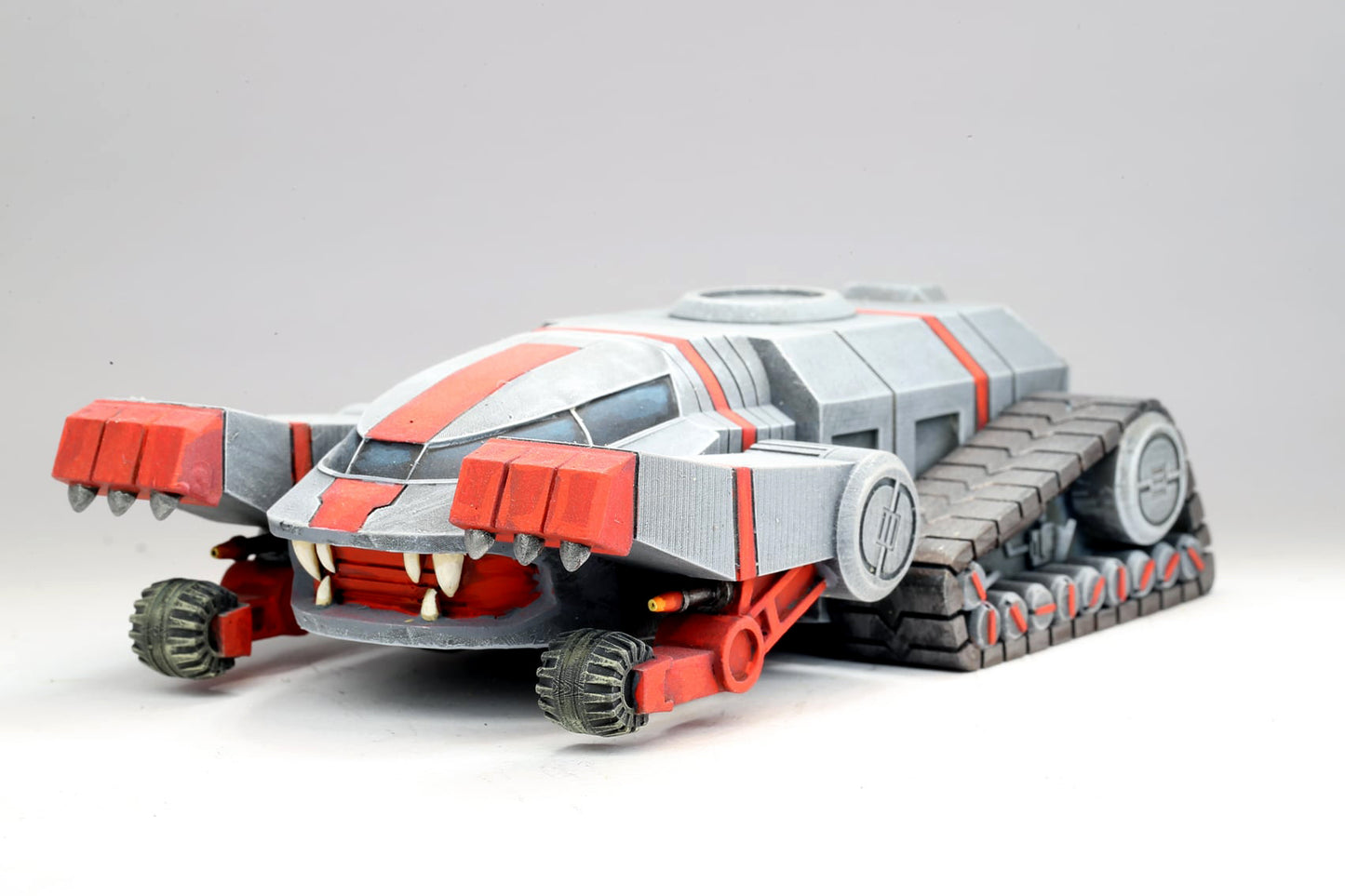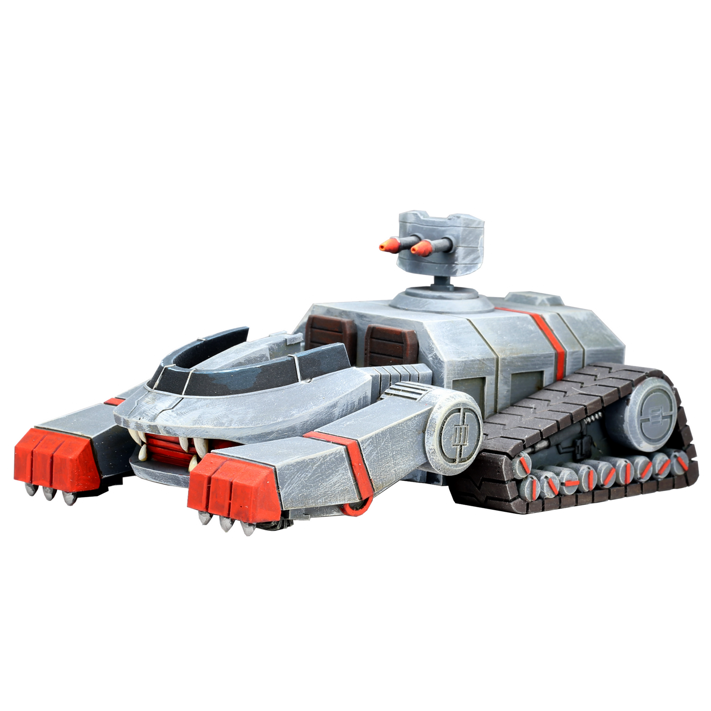 One turret and two cabs and two front wheel options included. Printed in SLA resin and supplied unpainted. This is a multipart kit and requires assembly. Miniature not supplied. Supplied unpainted.