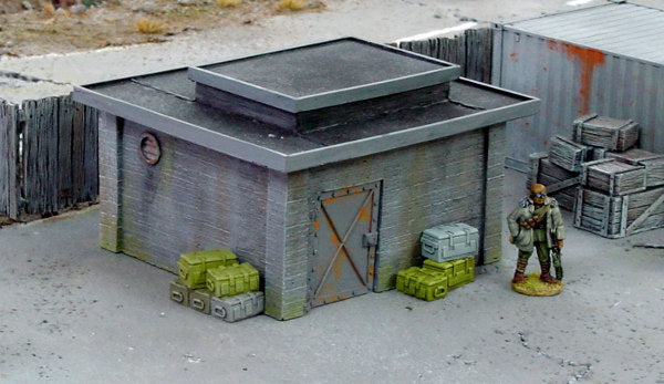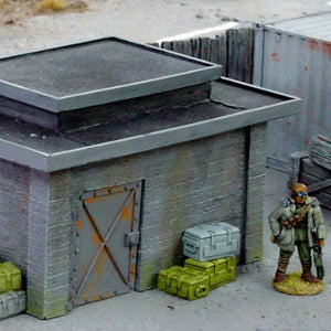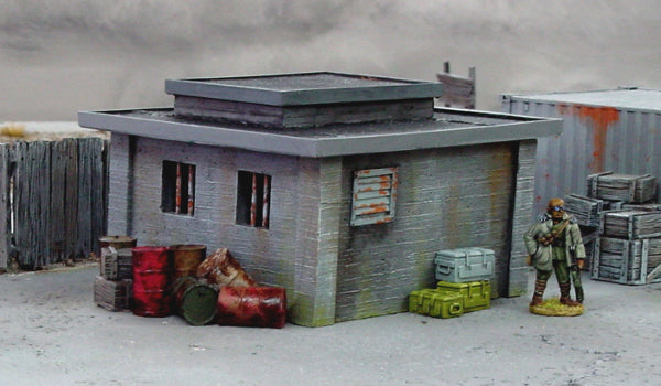 This concrete shelter can represent a wide variety of buildings from storage rooms, guard houses or a location for a discerning post-apocalyptic arms dealer.
