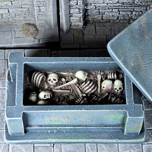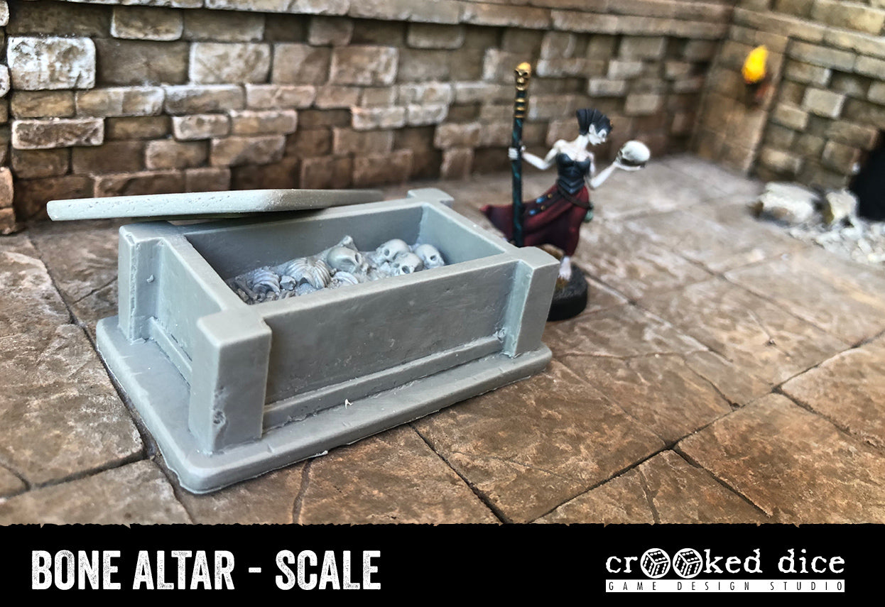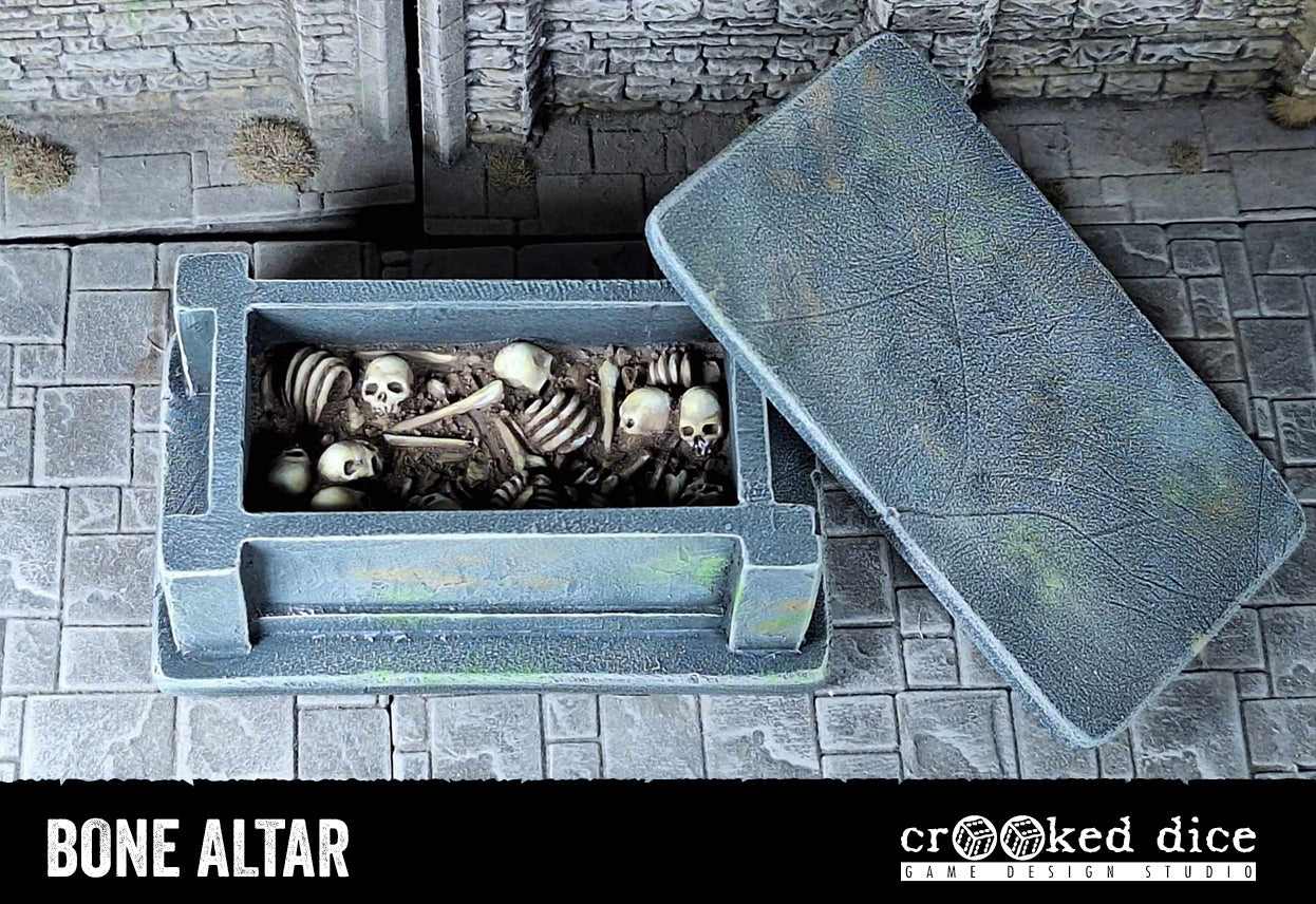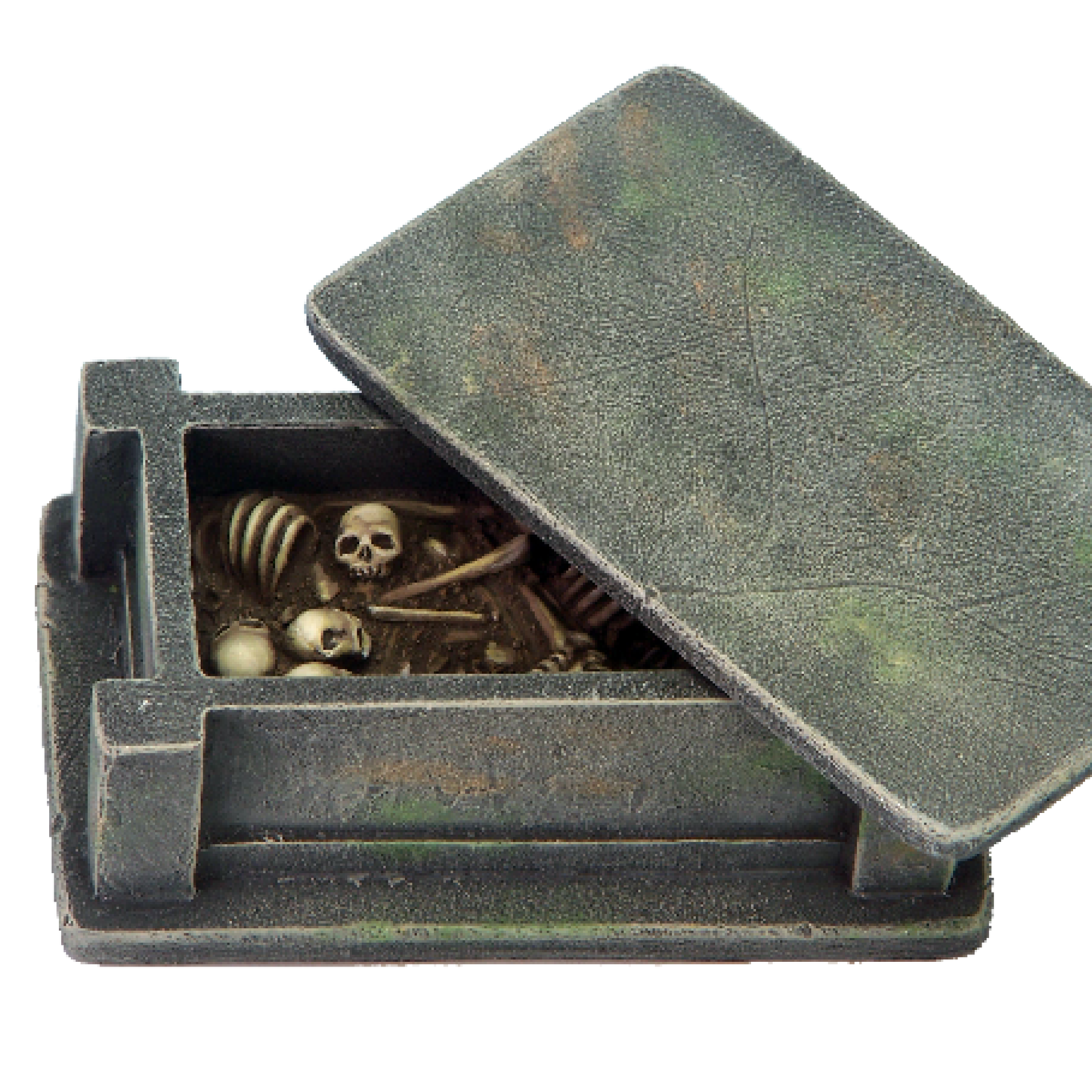 Sculpted by Iain Colwell. Painted for display by Andrew Taylor. Sold unpainted. This kit includes a resin altar containing remains with removable lid. Base 60mm x 35mm. Height 21mm including lid.