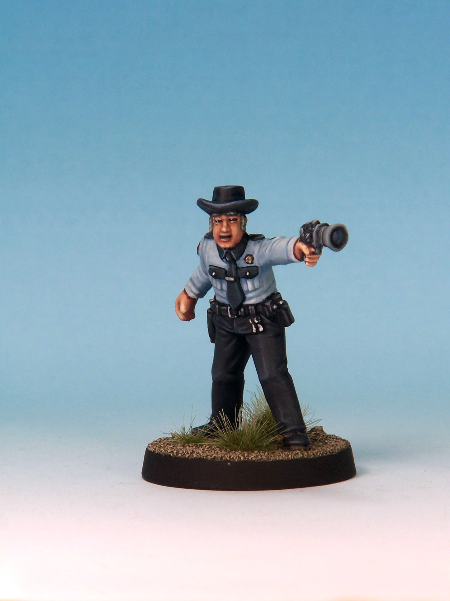 Sculpted by Mark Evans. Cast in white metal. Painted for display by Simon Bradley. Supplied unpainted and with a 25mm slottabase.