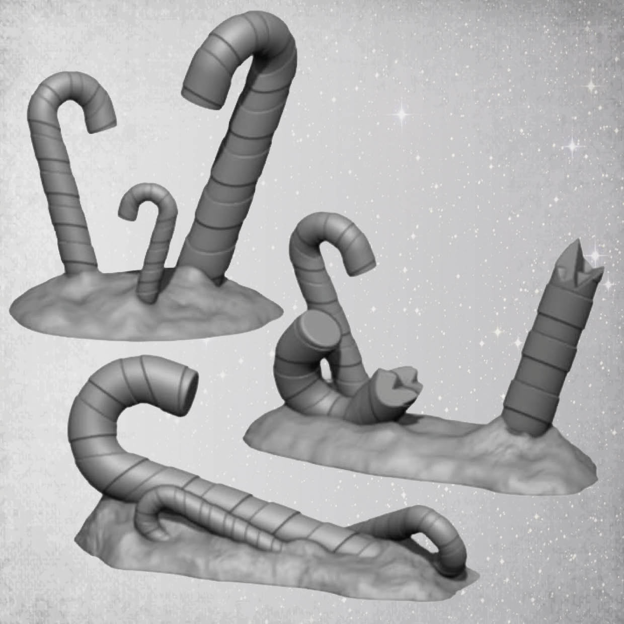 These giant sticky treats sprout from the snow in Santa's magical winter wonderland. Three different piles included. This terrain is used in the free 7TV episode in the December 2025 issue of Wargames illustrated!