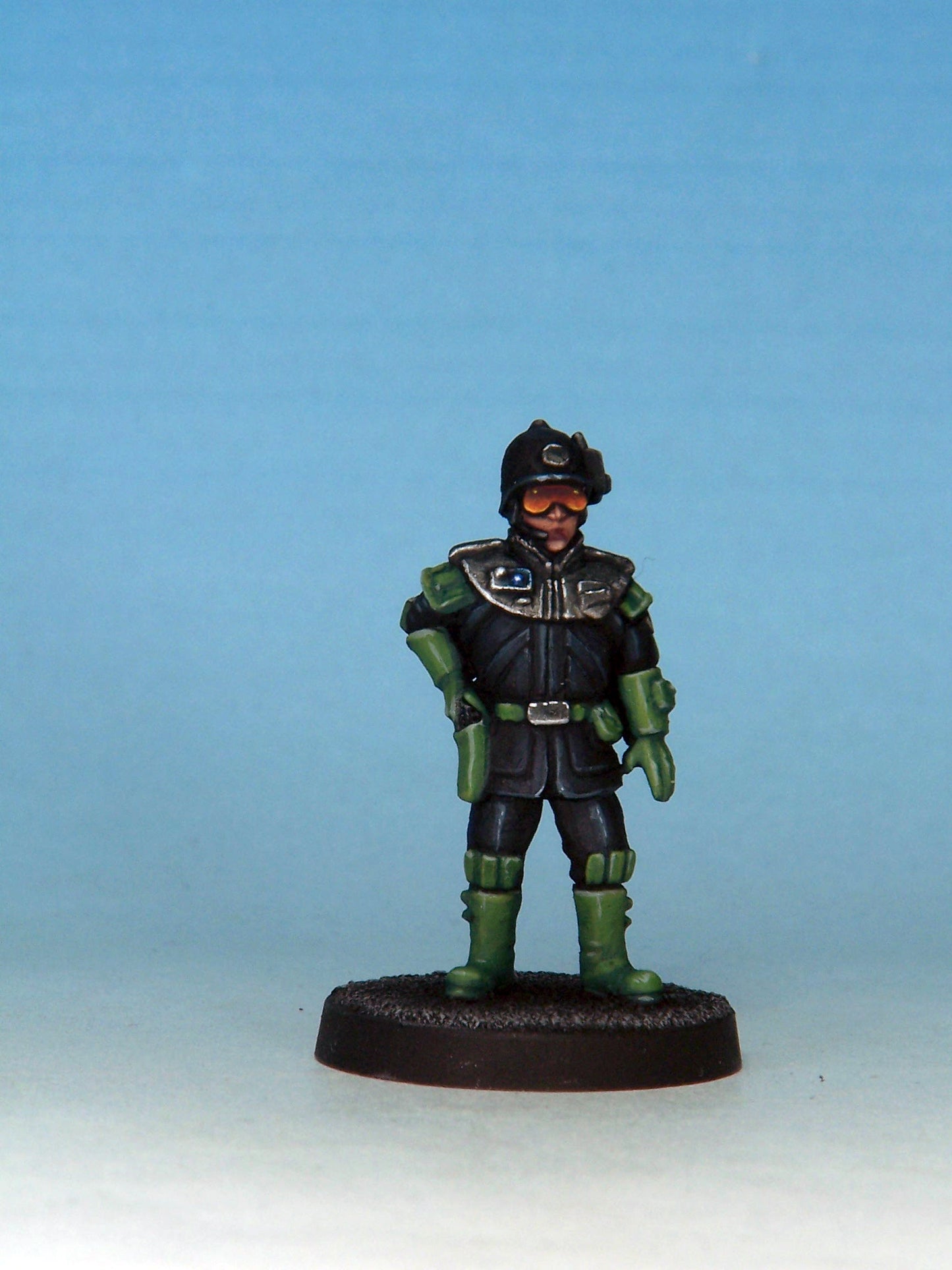 The colonial police are Governor Manduc Greiss’s uniformed watchdogs, charged with keeping order in the colony. Officers patrol the streets, shakedown hustlers and Baung and Flinch-pimpers, direct ground traffic and try to keep the Pogo Street Punkas from skinning the visitors. Their distinctive psychotropic neutralising visors fetch high prices in Lazar’s Bazaar.