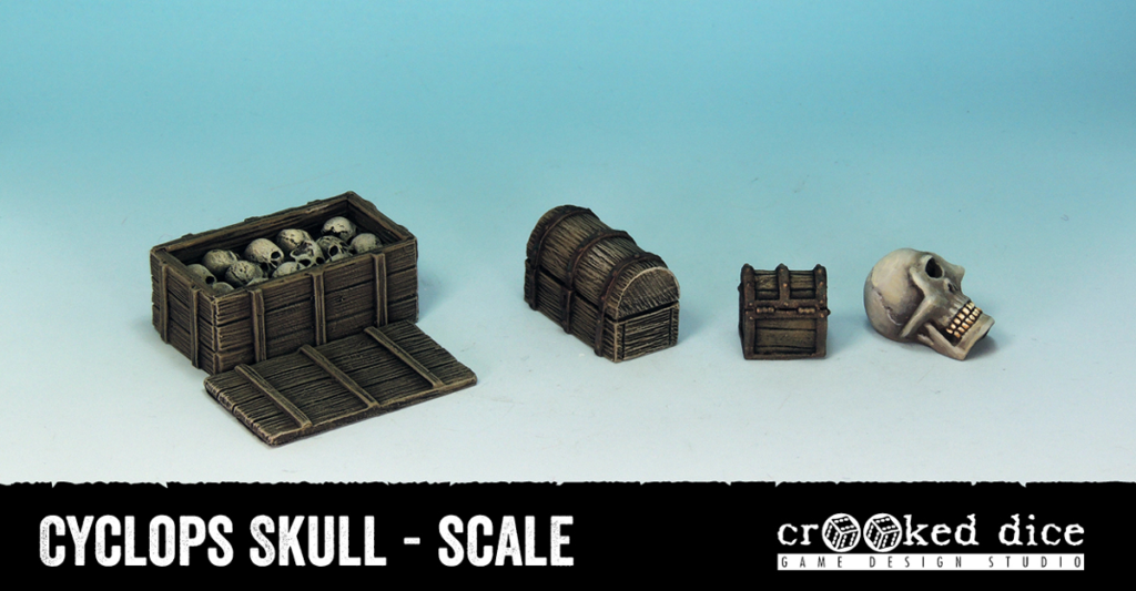 In abandoned tombs and crumbling catacombs, you might stumble across the remains of some fearsome beast. This products contains one cyclops skull cast in resin. The skull is approximately 15 mm long, 9mm wide and 10mm high.