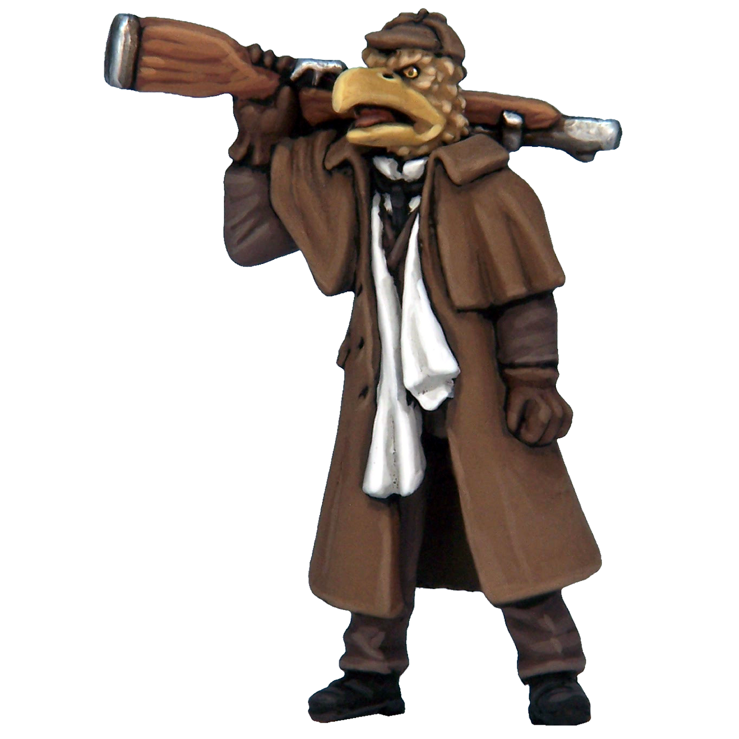 Armed with his ‘Quimby Special’ a unique rifle fitted with a sniper scope, and trained in bartitsu martial arts, he is also a formidable opponent at a distance and in hand to hand.