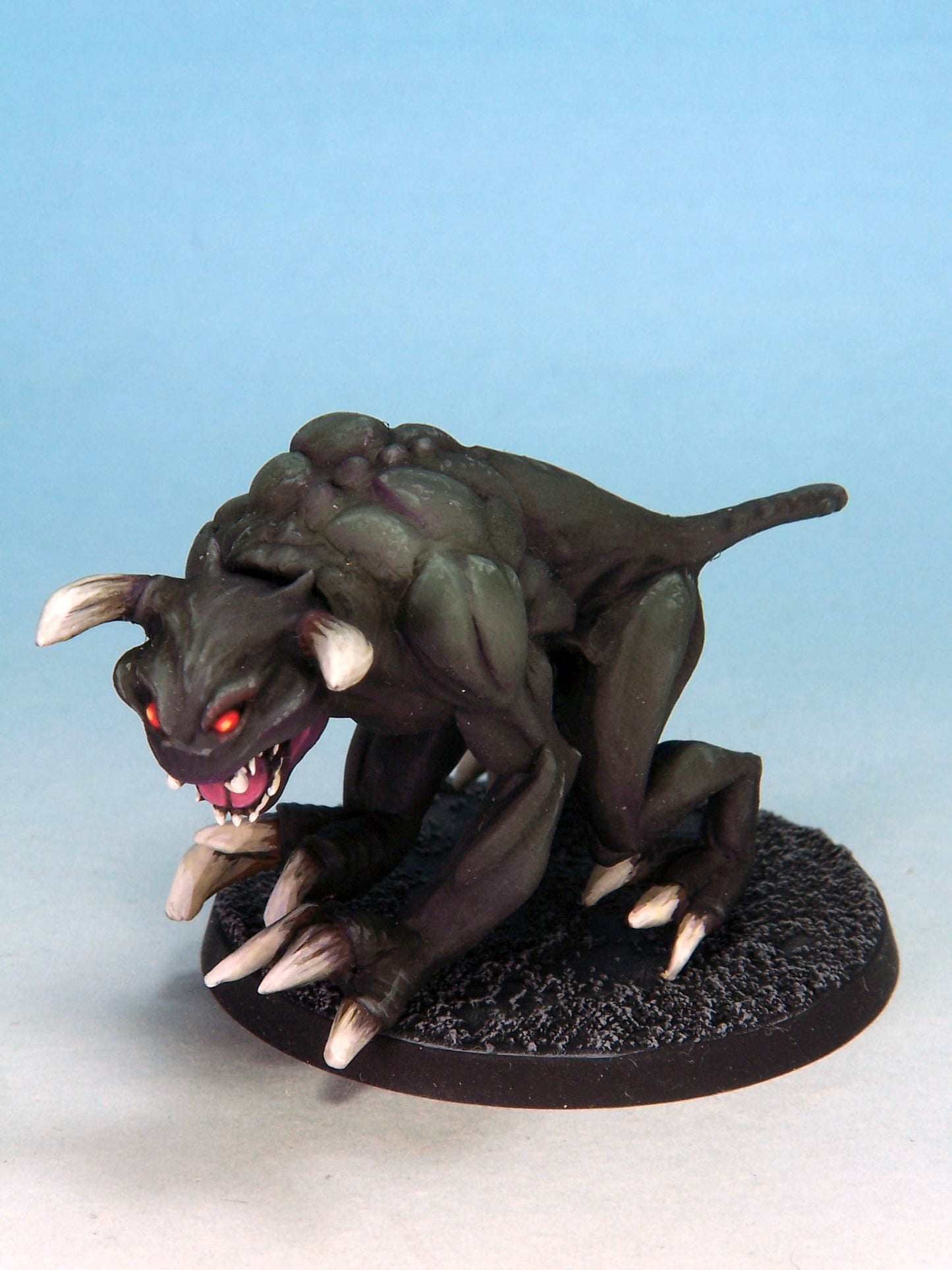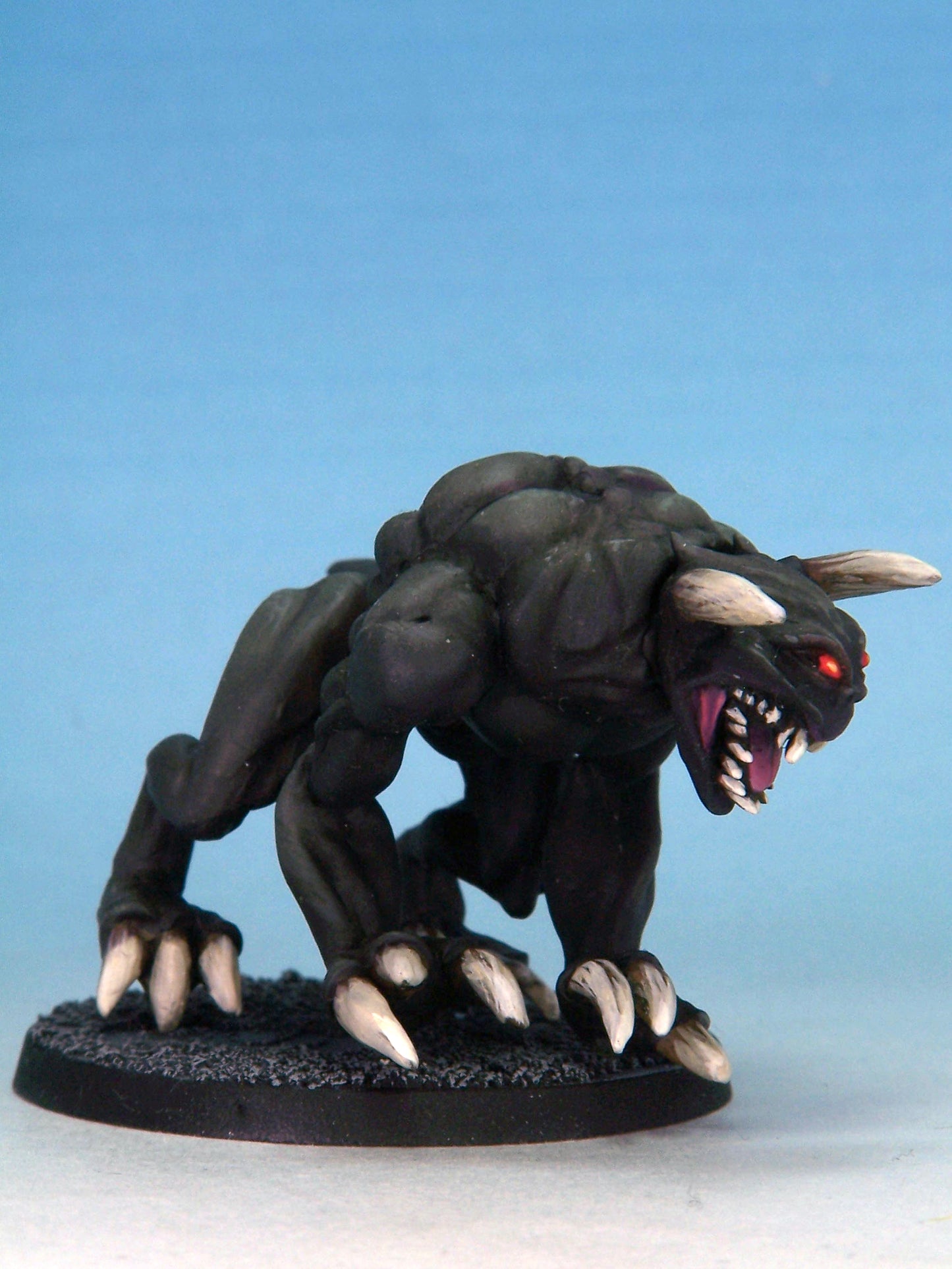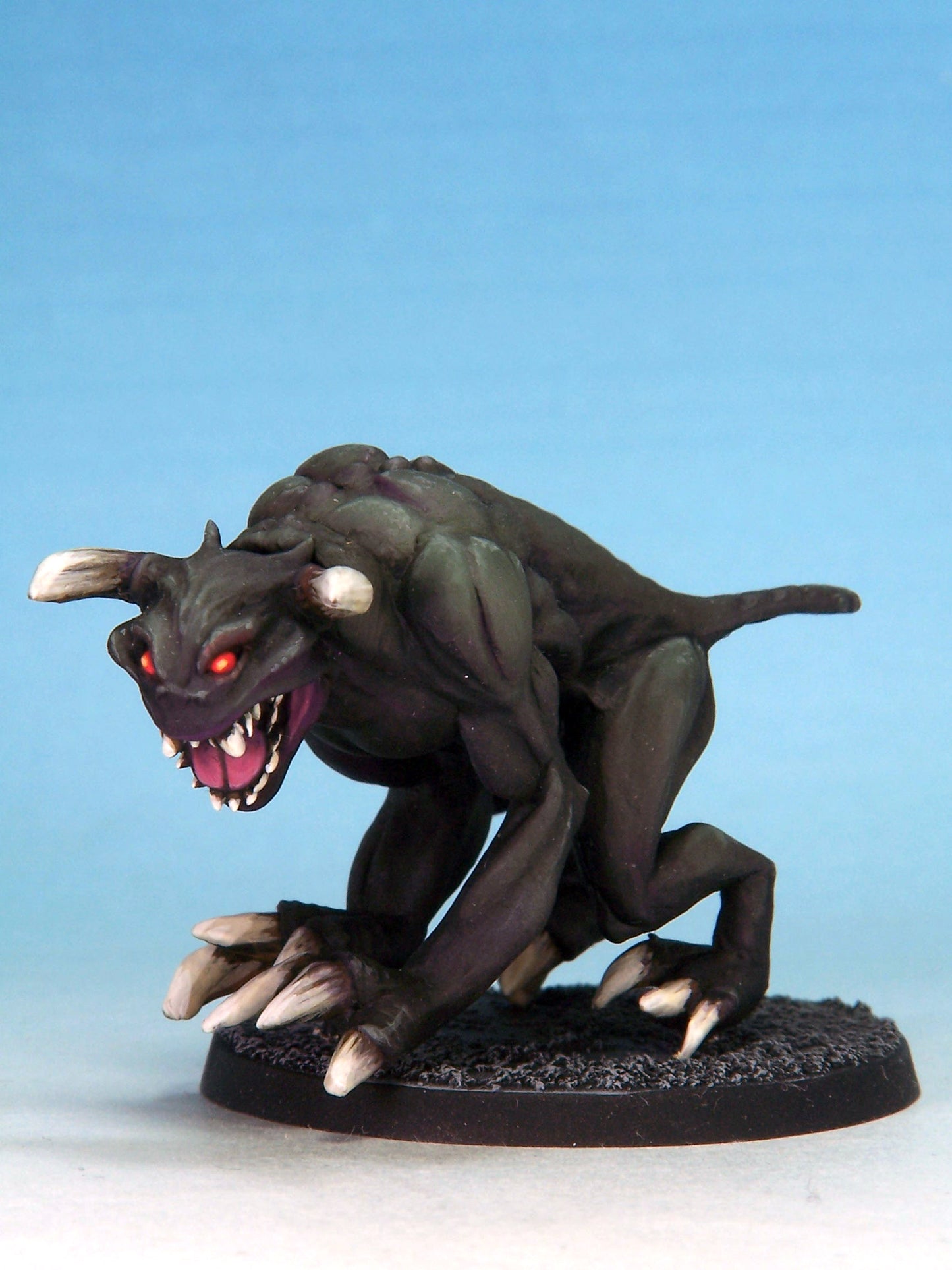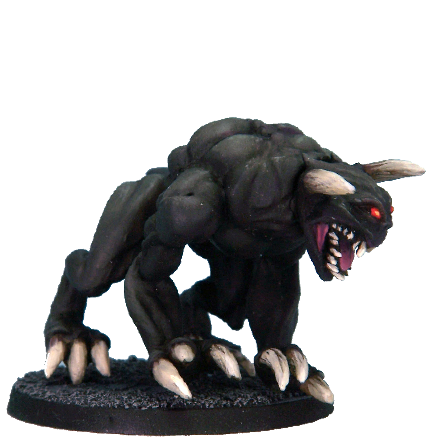 The Demonic Dog is a terrifying, savage quadruped ranging in size from an unearthly husky dog through to an other-dimensional hell hound the size of a pony. It can leap across busy traffic in a single bound and bite through bone.