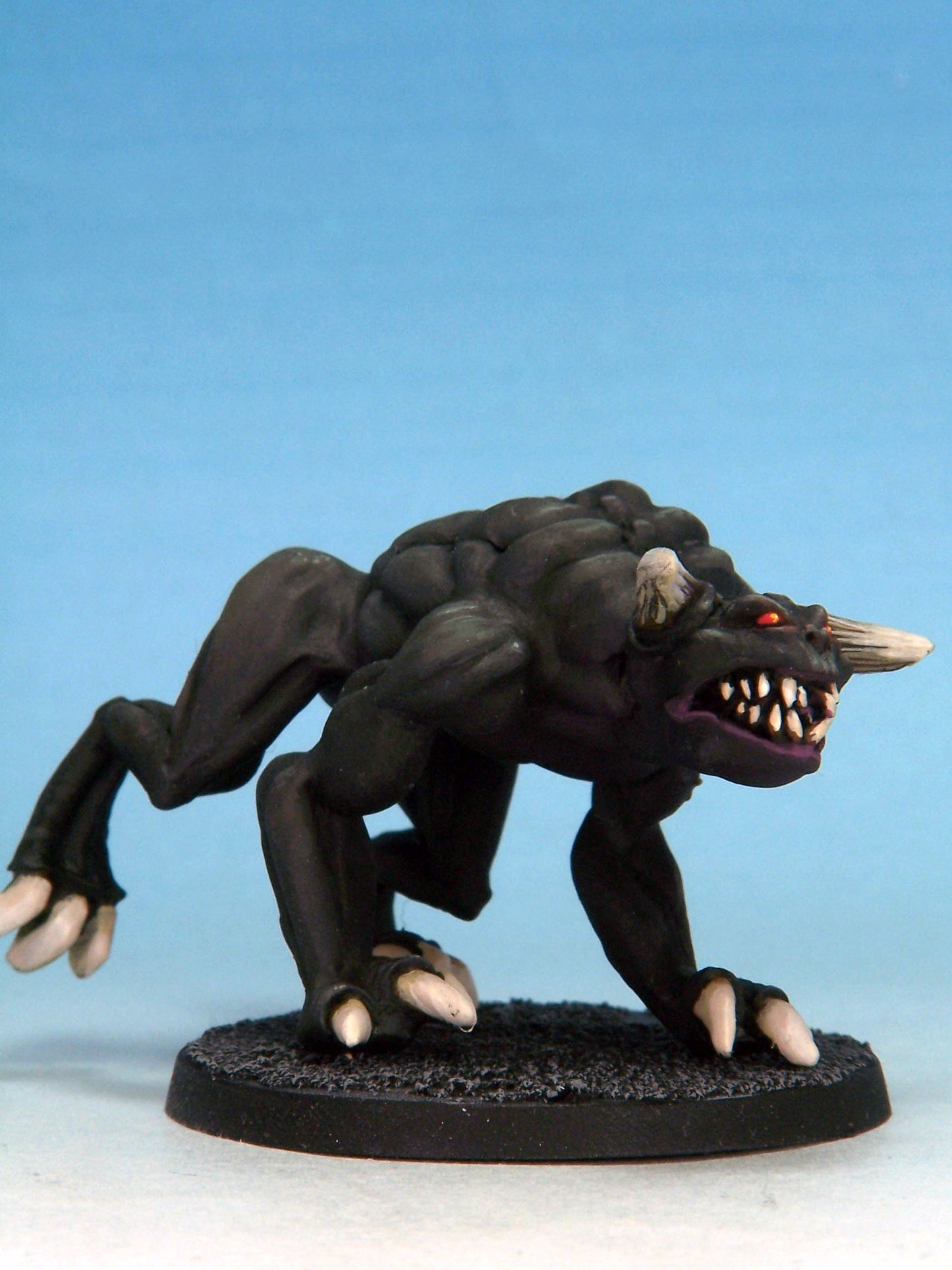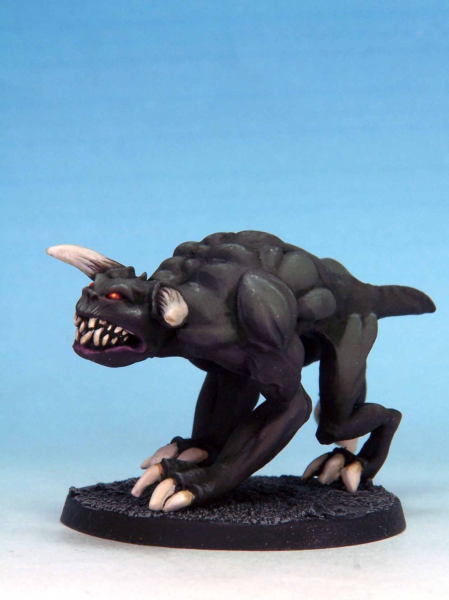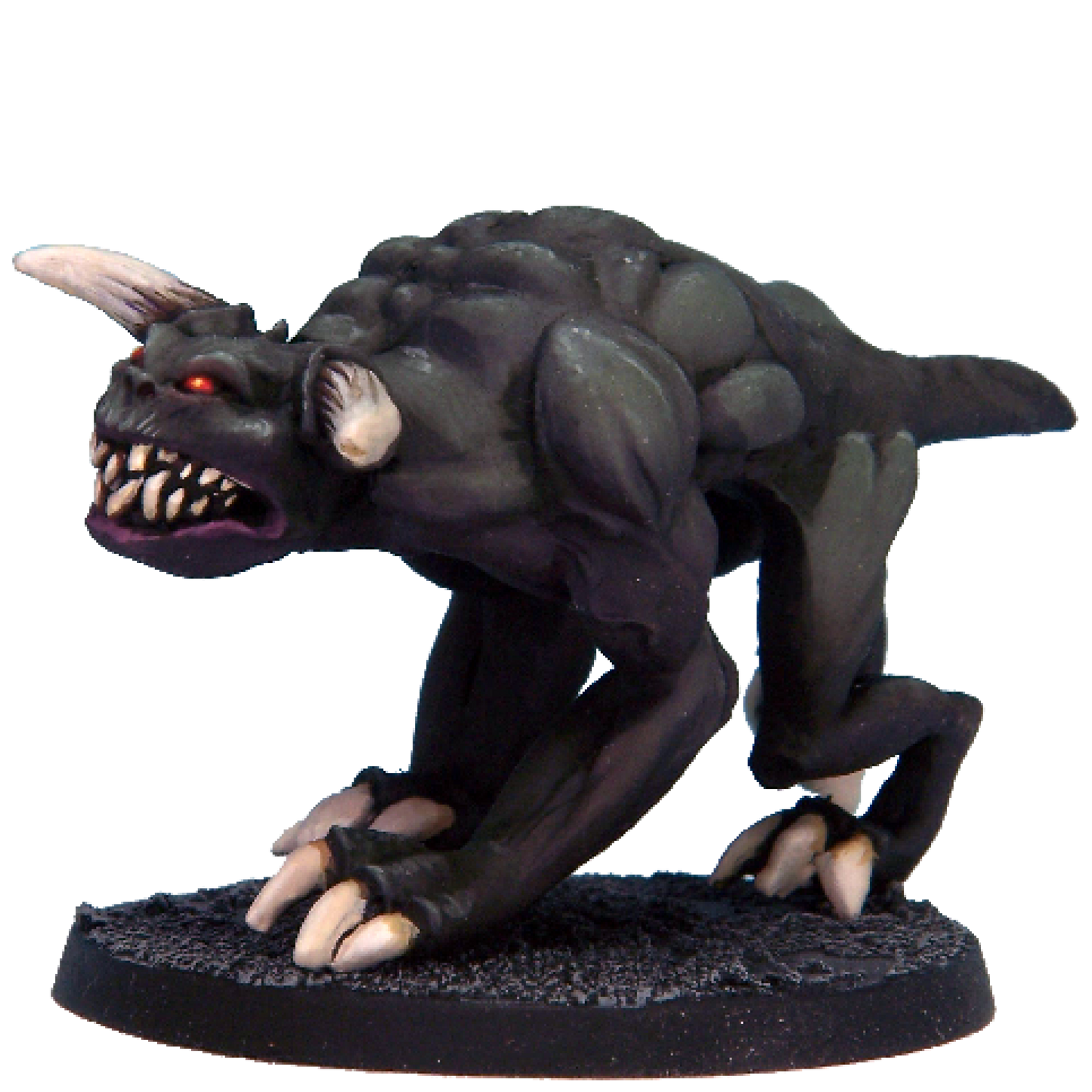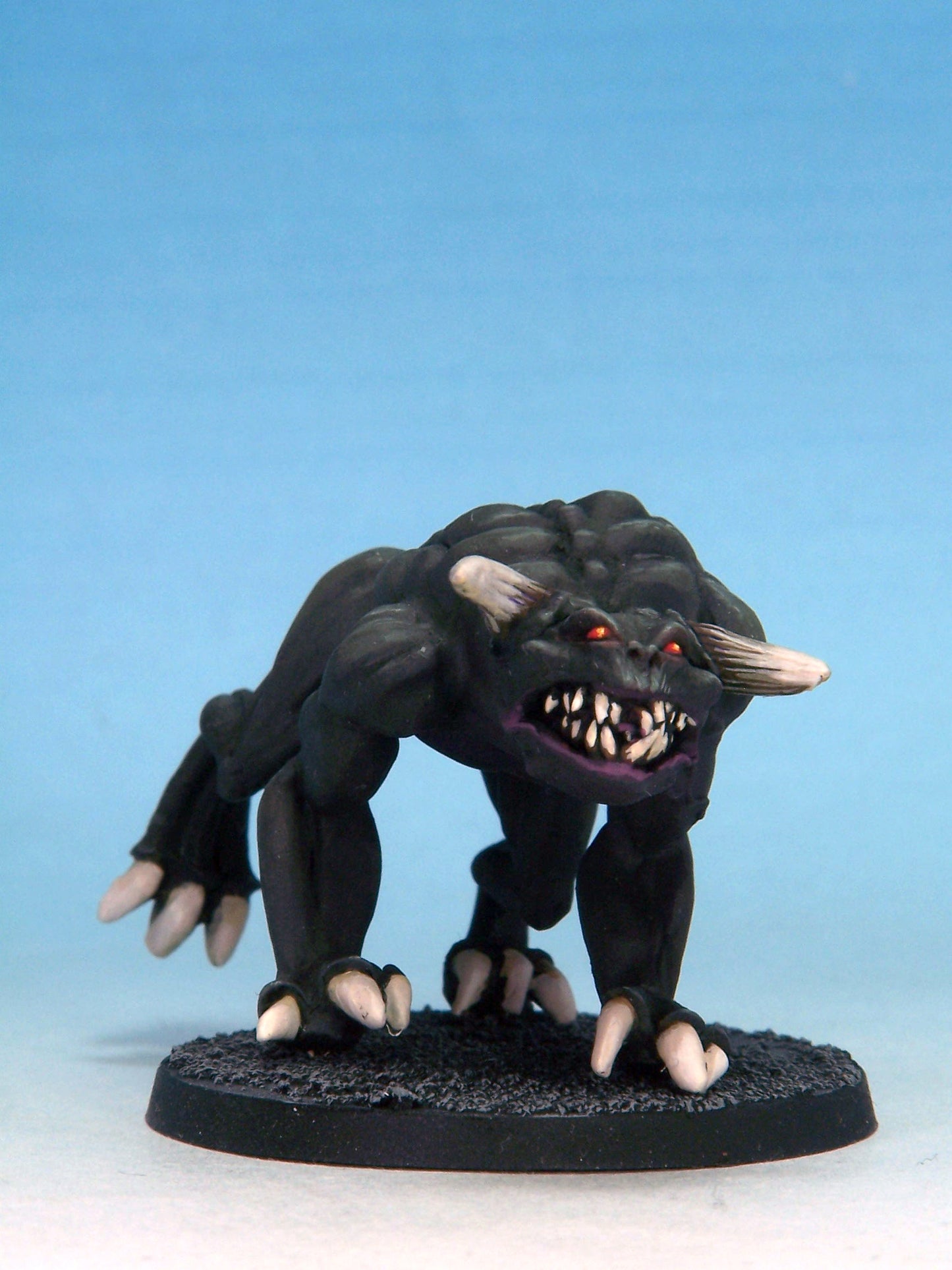 The Demonic Dog is a terrifying, savage quadruped ranging in size from an unearthly husky dog through to an other-dimensional hell hound the size of a pony. It can leap across busy traffic in a single bound and bite through bone.