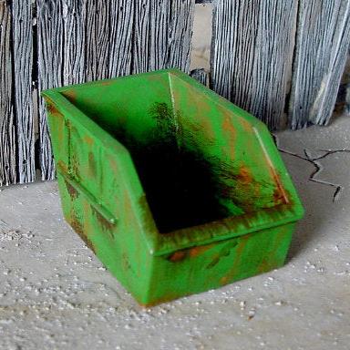 Set of three different dumpsters and skips. Cast in resin. Supplied unpainted. Sculpted by Jens Beckmann.