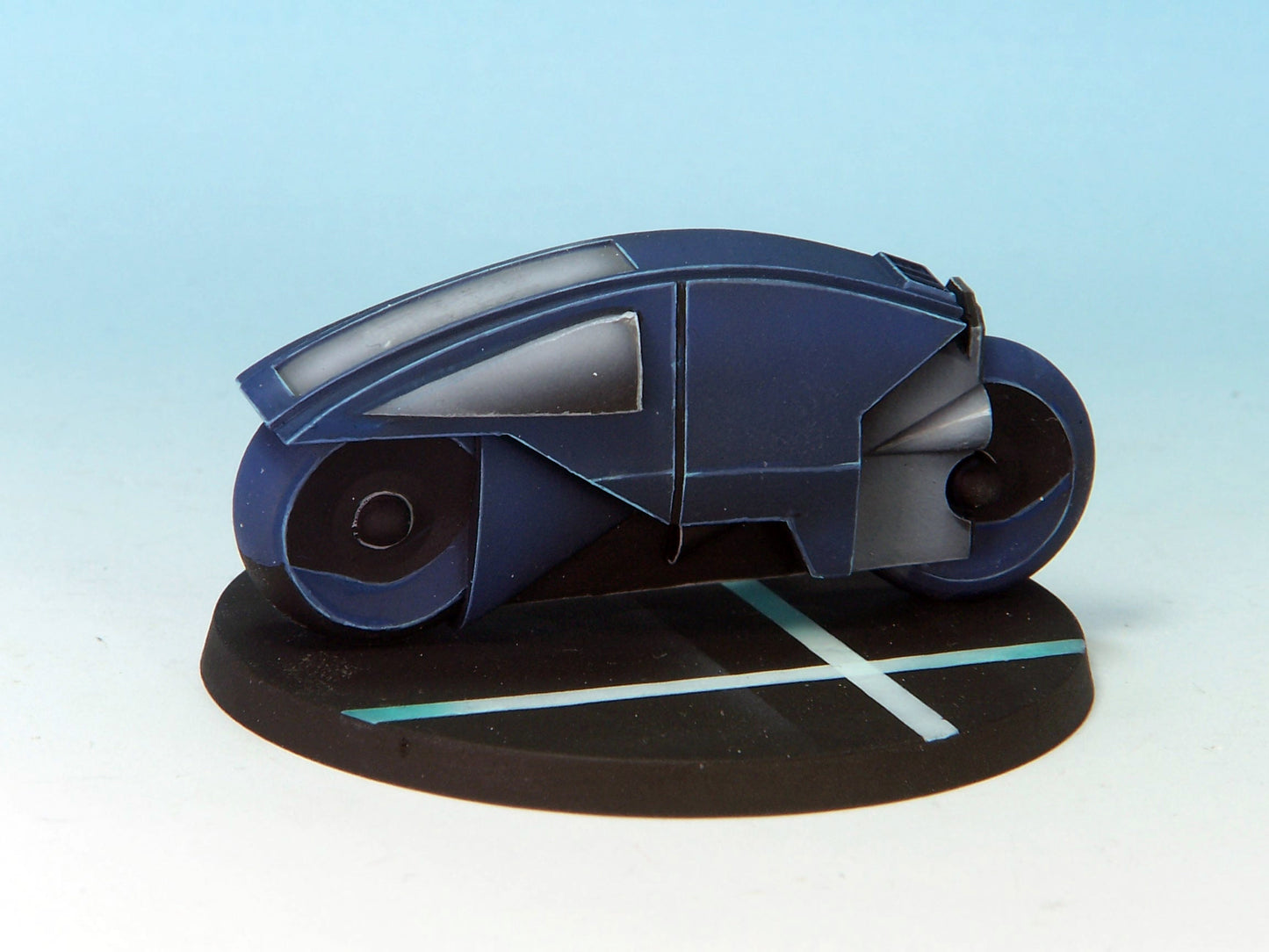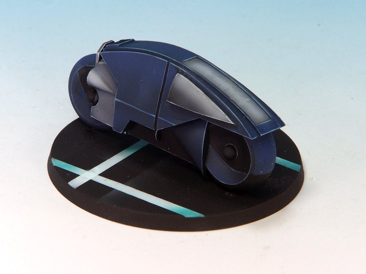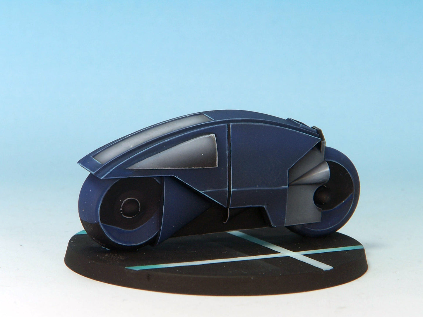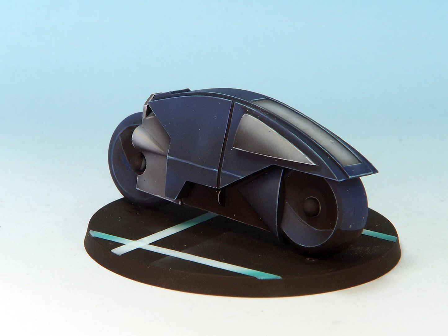 A computer-generated cycle capable of tremendous speeds. Takes corners at right angles and leaves a trail of solid laser light in its wake.