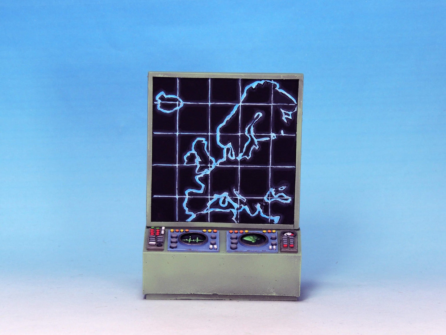 This resin kit comes in two pieces – map and console. The map measure 50mm long x 55mm high x 8mm deep. The console is 50mm long x 20mm high x 25mm deep.