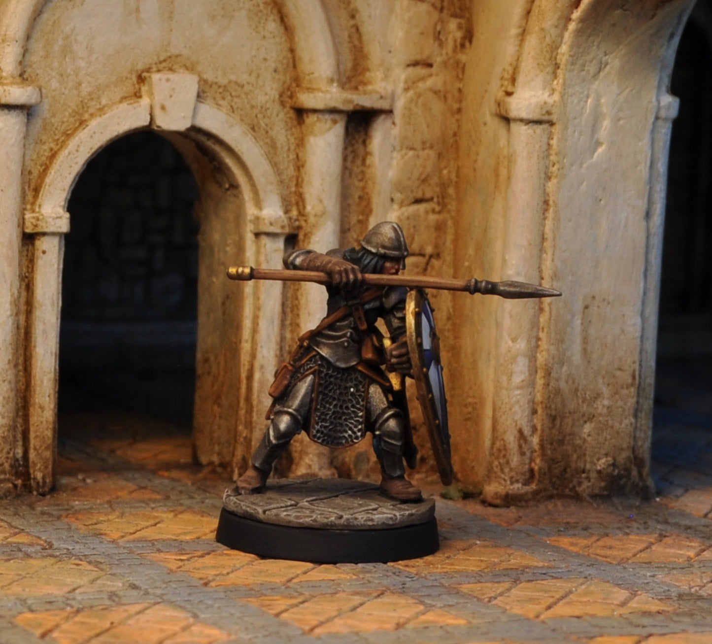 The female fighter is clad in plate mail and shield to defend against any dungeons denizens that may cross the path of your party! This model comes with both sword and spear options.
