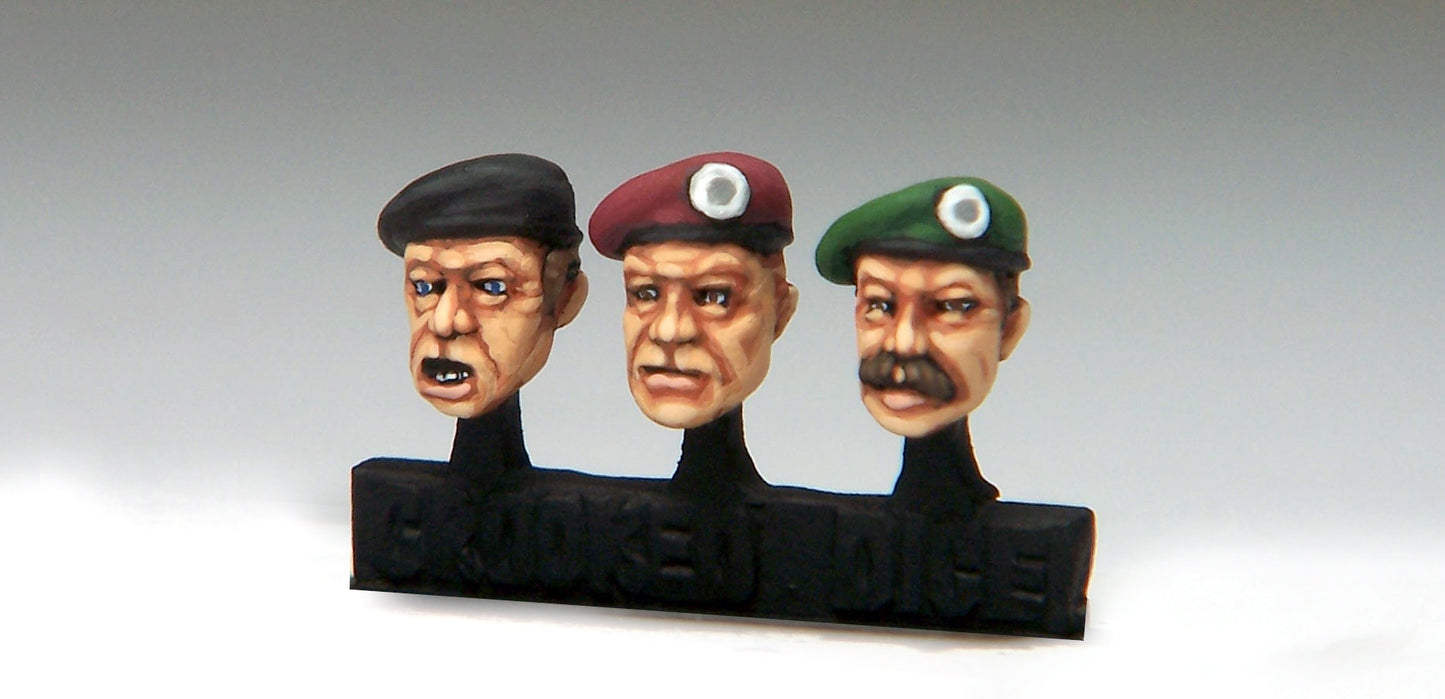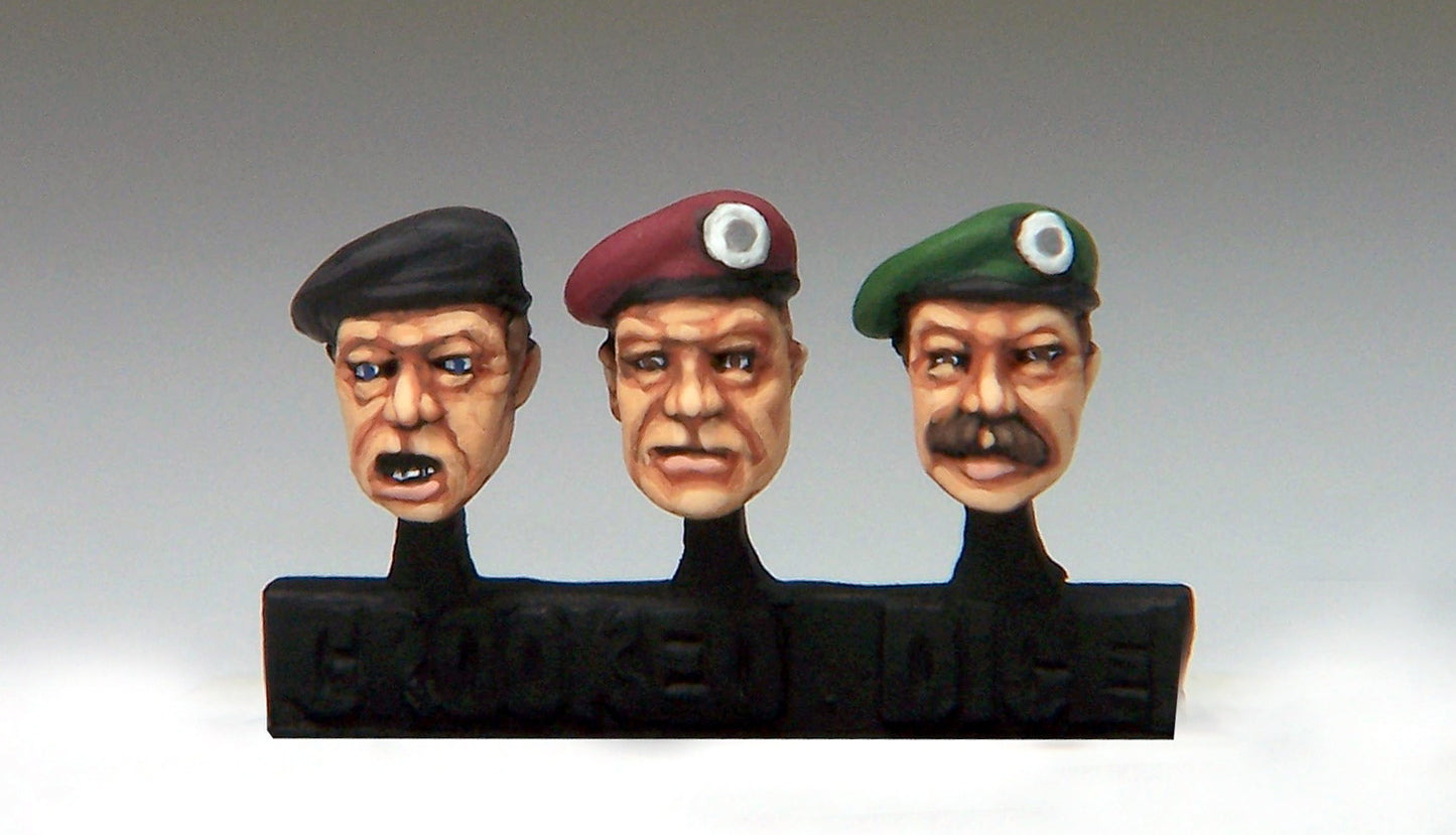 Sprue of 1 each of 3 Fighting Men heads ready to get stuck into some serious conflict. All 3 heads wear berets, comprises 1x Shouting head, 1x Determined head and 1x Moustache head.