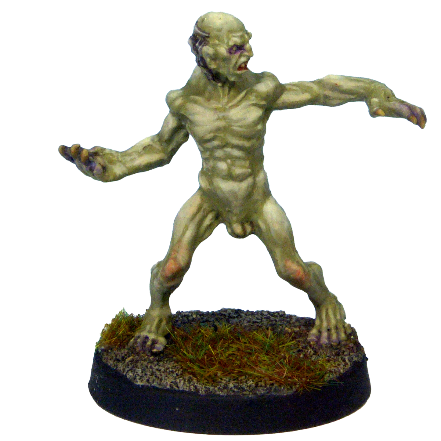 Ghouls are, foul flesh-eating abominations, which sometimes infest ancient graveyards and mausoleums. These monsters were once living creatures which are risen from the dead by foul necromantic means, and often bound to serve an evil magic user or cleric. They are unarmed, but wounds caused by their filthy claws can cause paralysis in their victims.