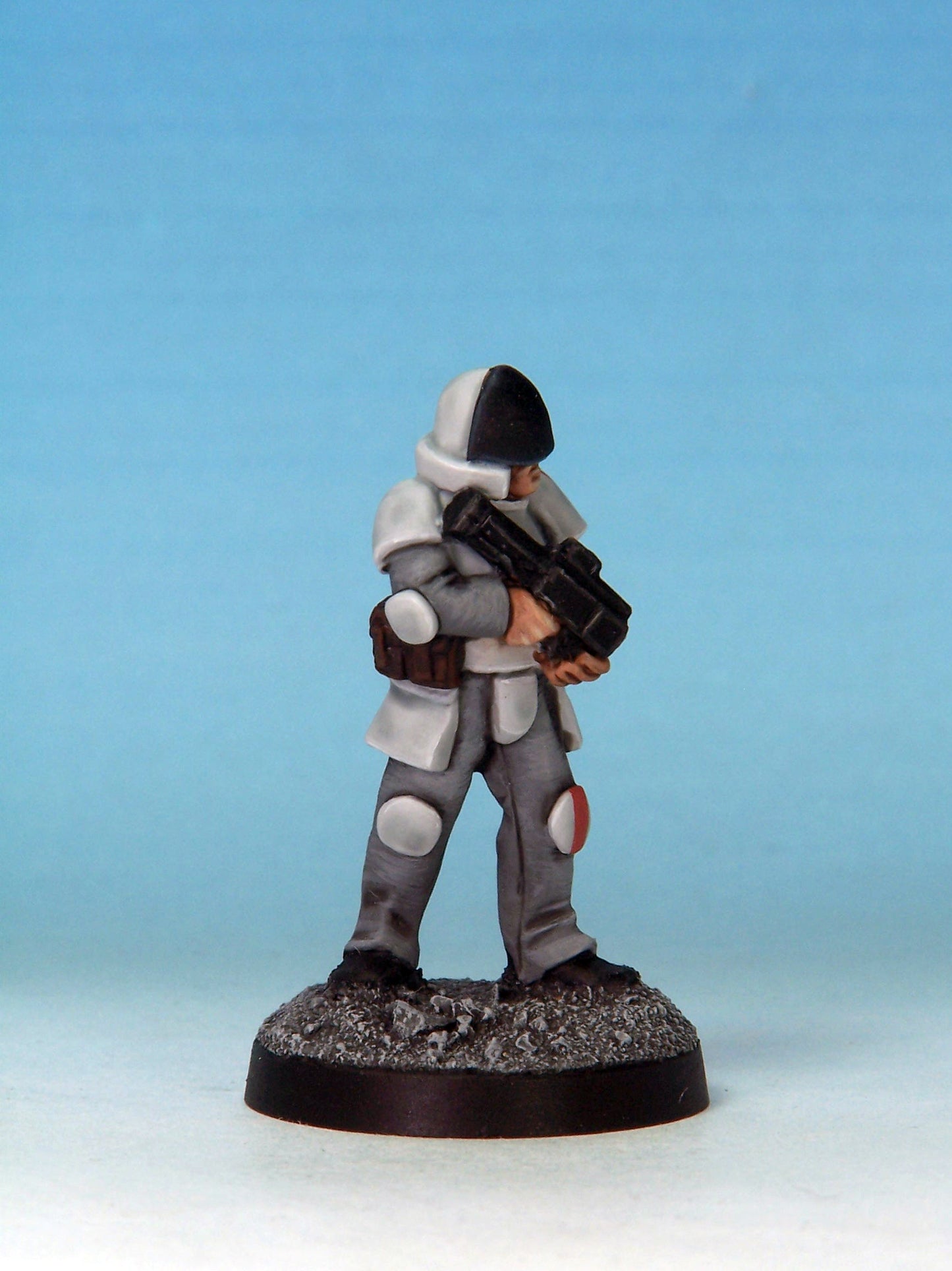Being armed with the latest carbines and clad in plexiglass-armour doesn’t mean these corporate troopers can hit a barn door – but they do look snazzy!