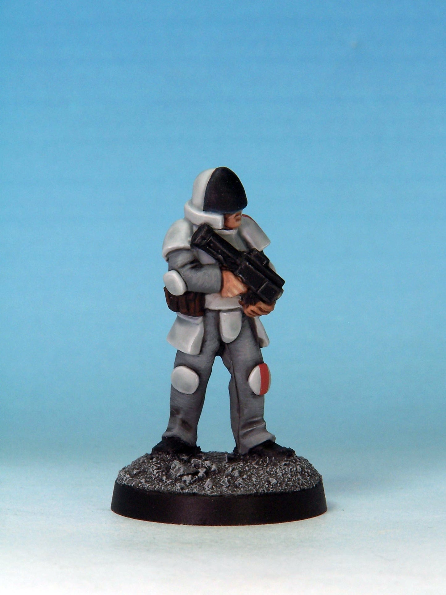 Sculpted by Jim Bowen. Cast in white metal. Painted for display by Callum France. Supplied unpainted and with a 25mm slottabase.