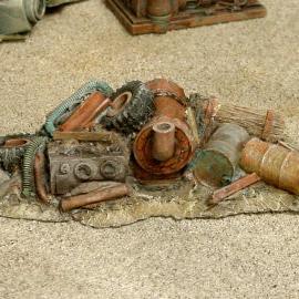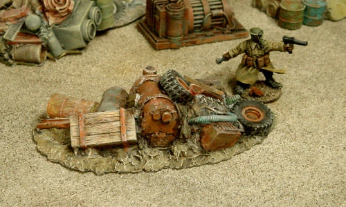 Seven different junk piles to populate your scrapyards and wrecks. Suitable for modern and post-apocalyptic tables. Junkpile G consist of four pieces.