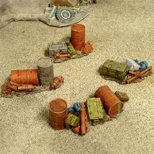 Seven different junk piles to populate your scrapyards and wrecks. Suitable for modern and post-apocalyptic tables. Junkpile G consist of four pieces.