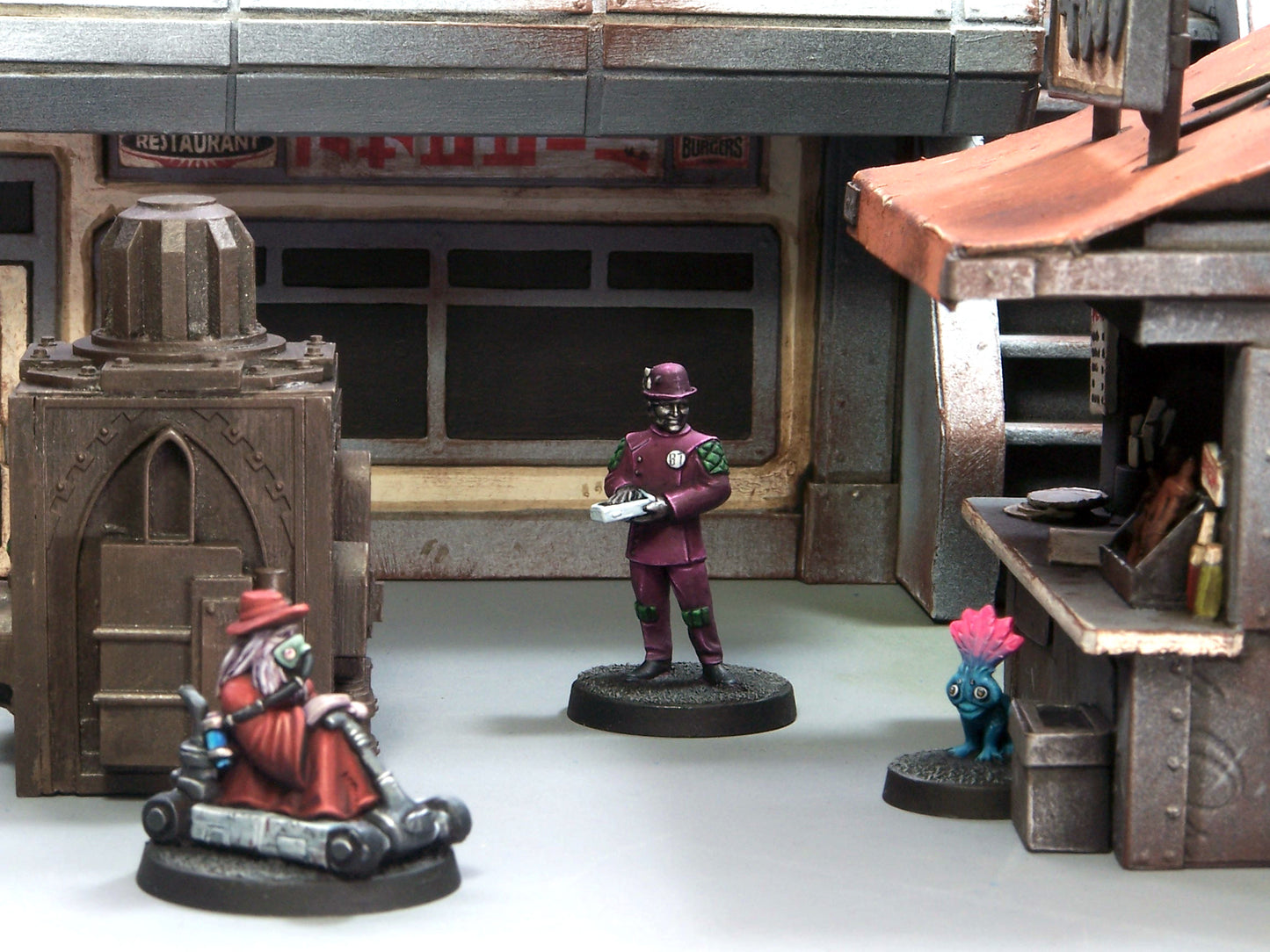One of the many wonders of Colony 87 is the labyrinthine Tiered Market, a maze of traders, merchants and dealers. Behind the back of the officious Market Inspector Unit L-Ron, you can haggle over the services of itinerant street lawyer Mo Isaac, and do your best to avoid the ravings of the Rolling Messiah. Hold on to your purses!