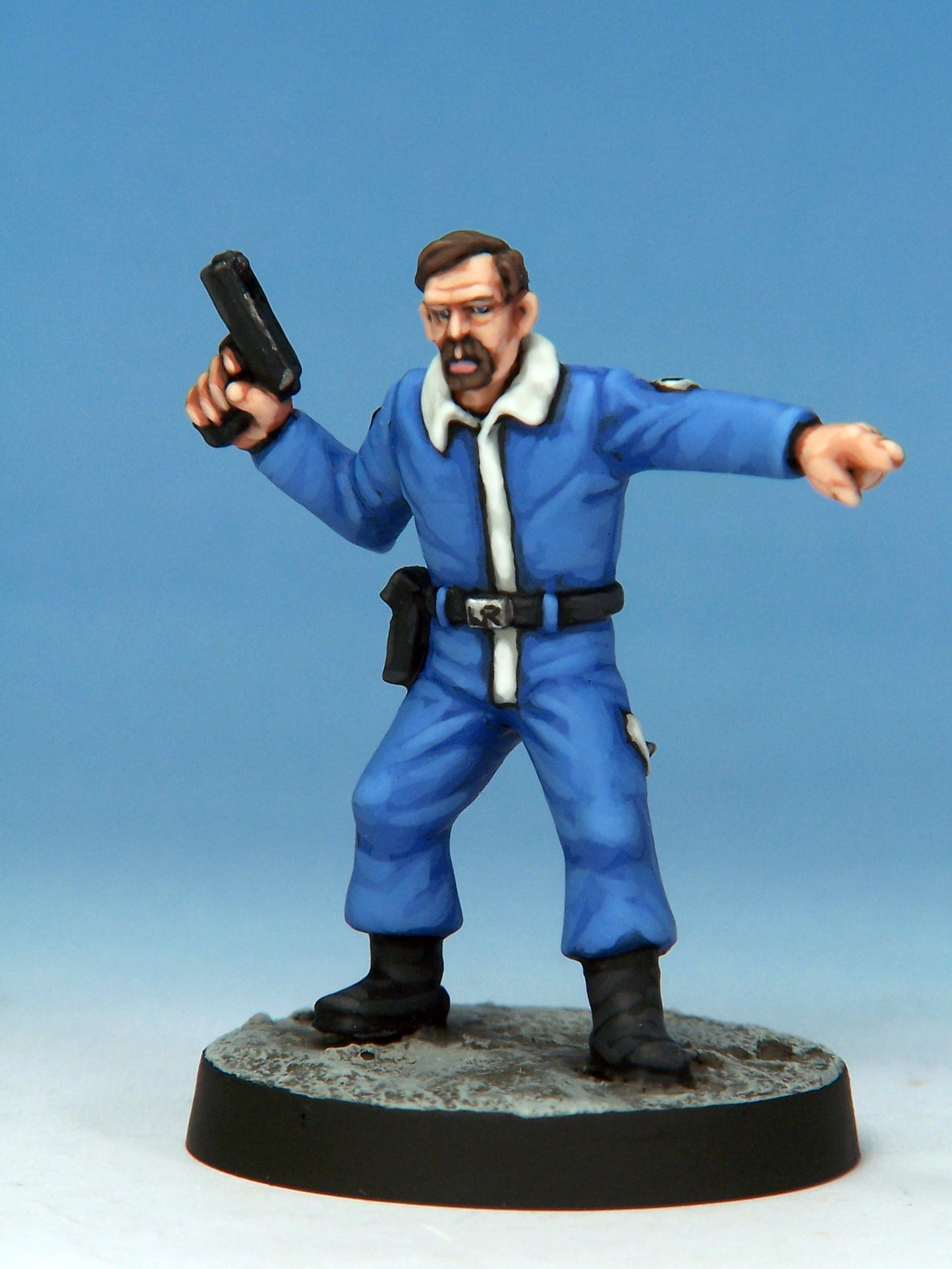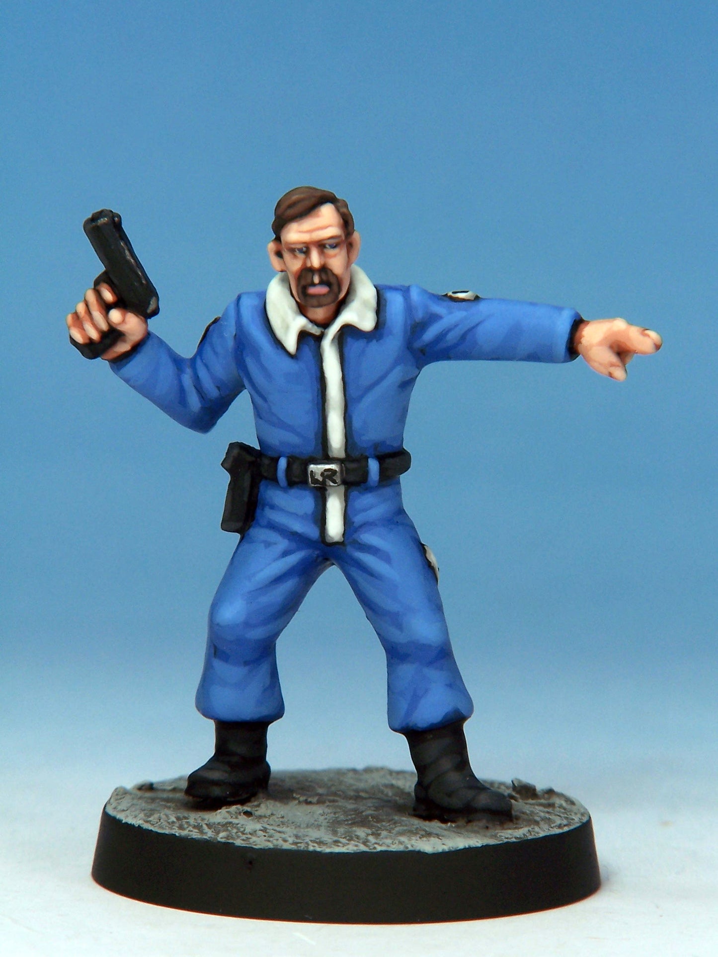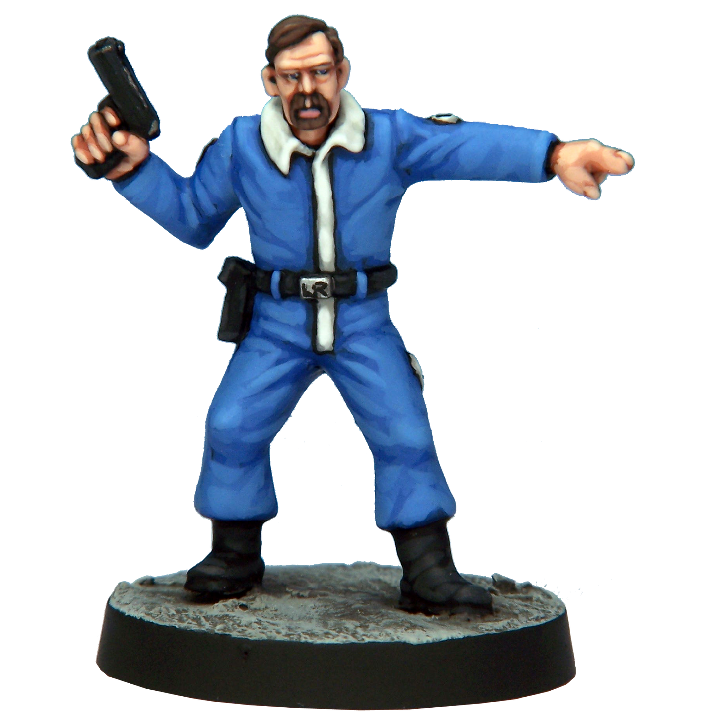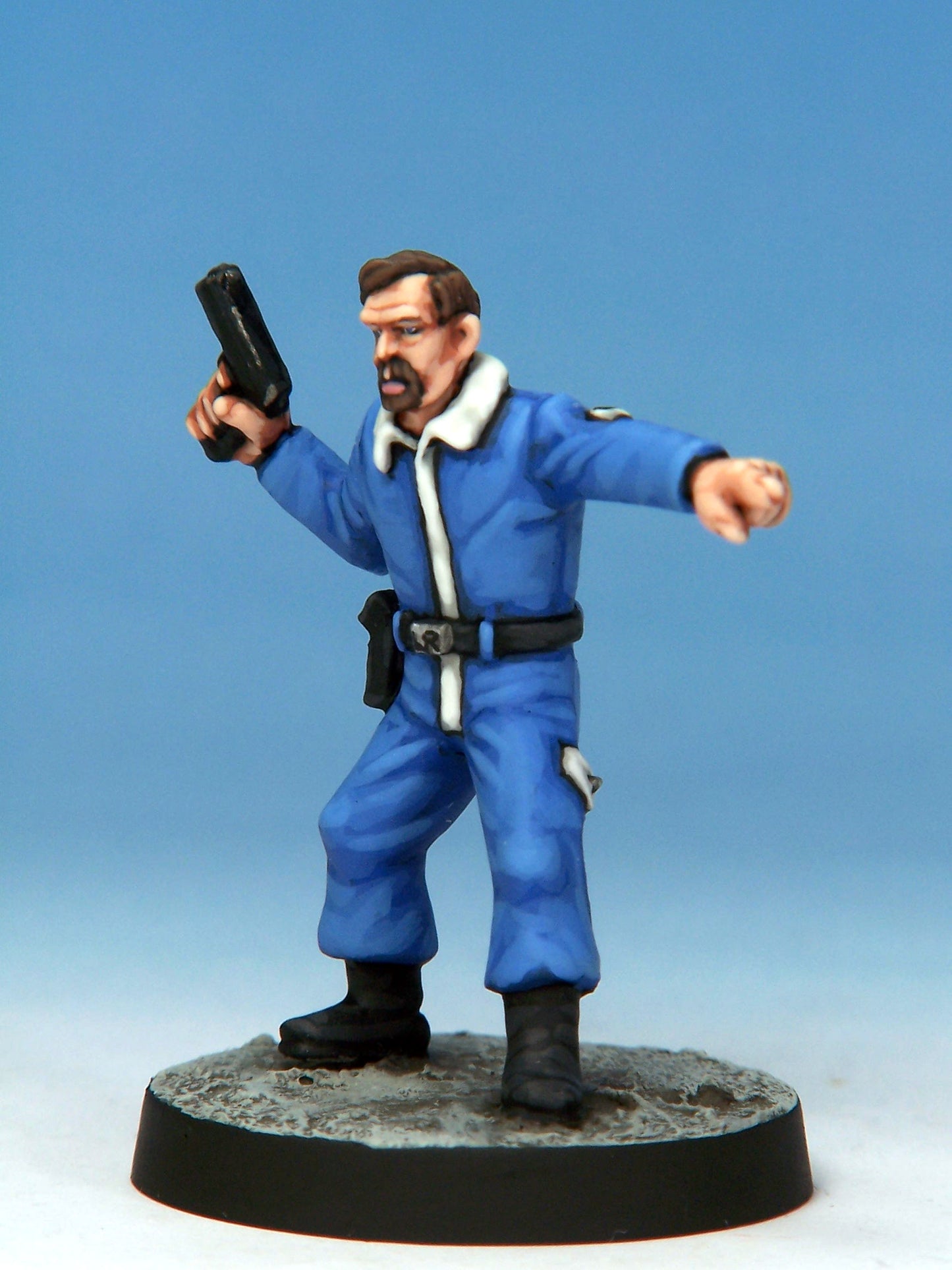 Sculpted by Mark Evans with weapons by Ian Mountain. Cast in white metal. Painted for display by Kevin Dallimore. Supplied unpainted and with a 25mm round base.