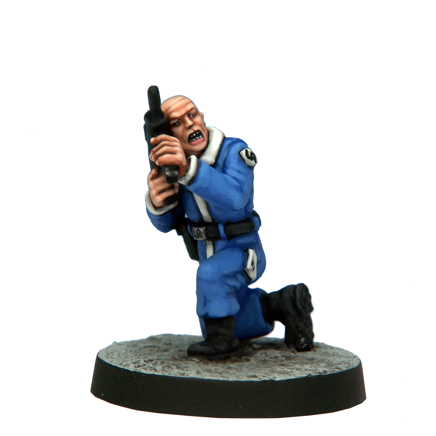 Sculpted by Mark Evans and Ernst Veingart. Cast in white metal. Painted for display by Ken Dallimore and Simon Bradley. Supplied unpainted and with a 25mm round slottabase.