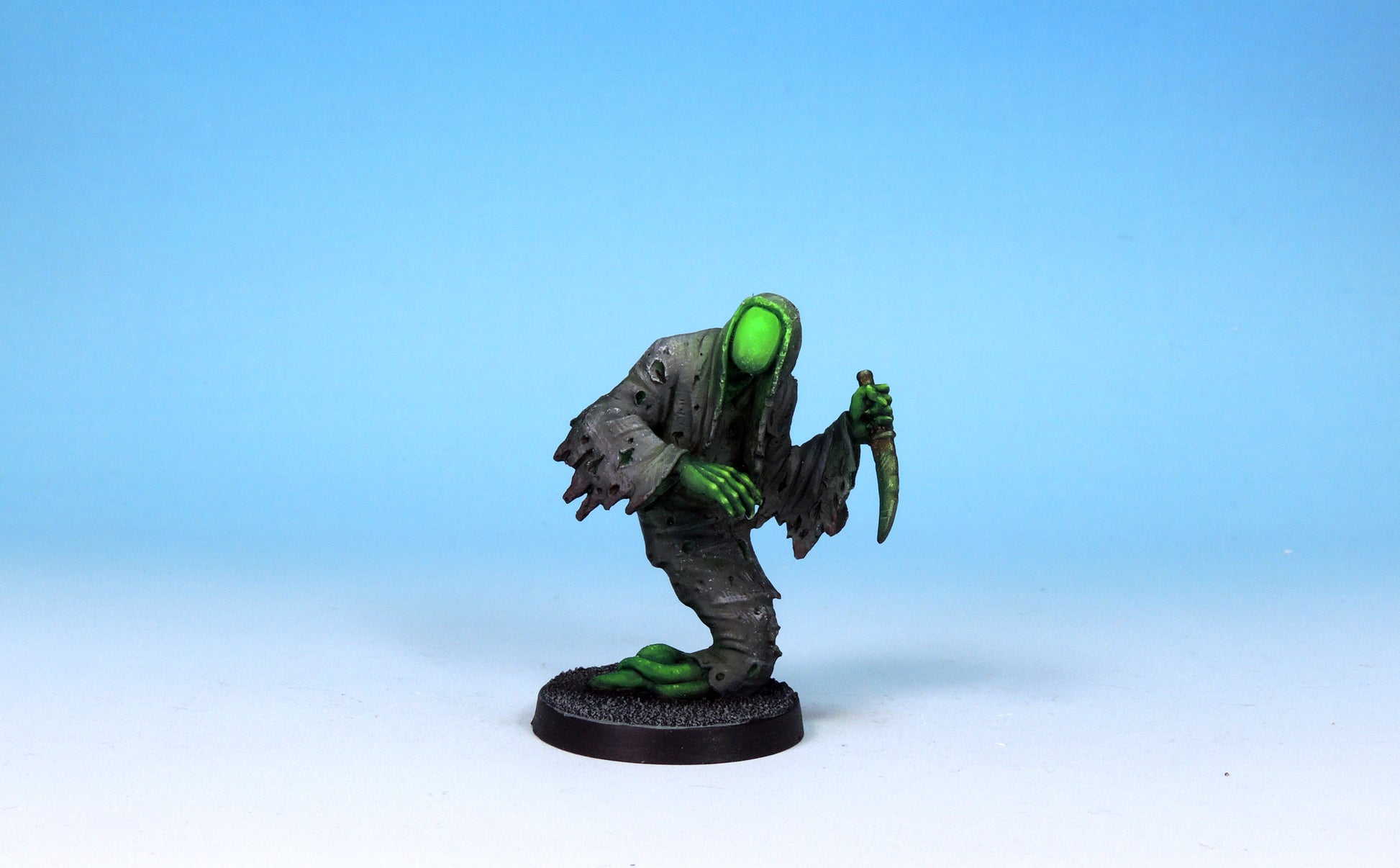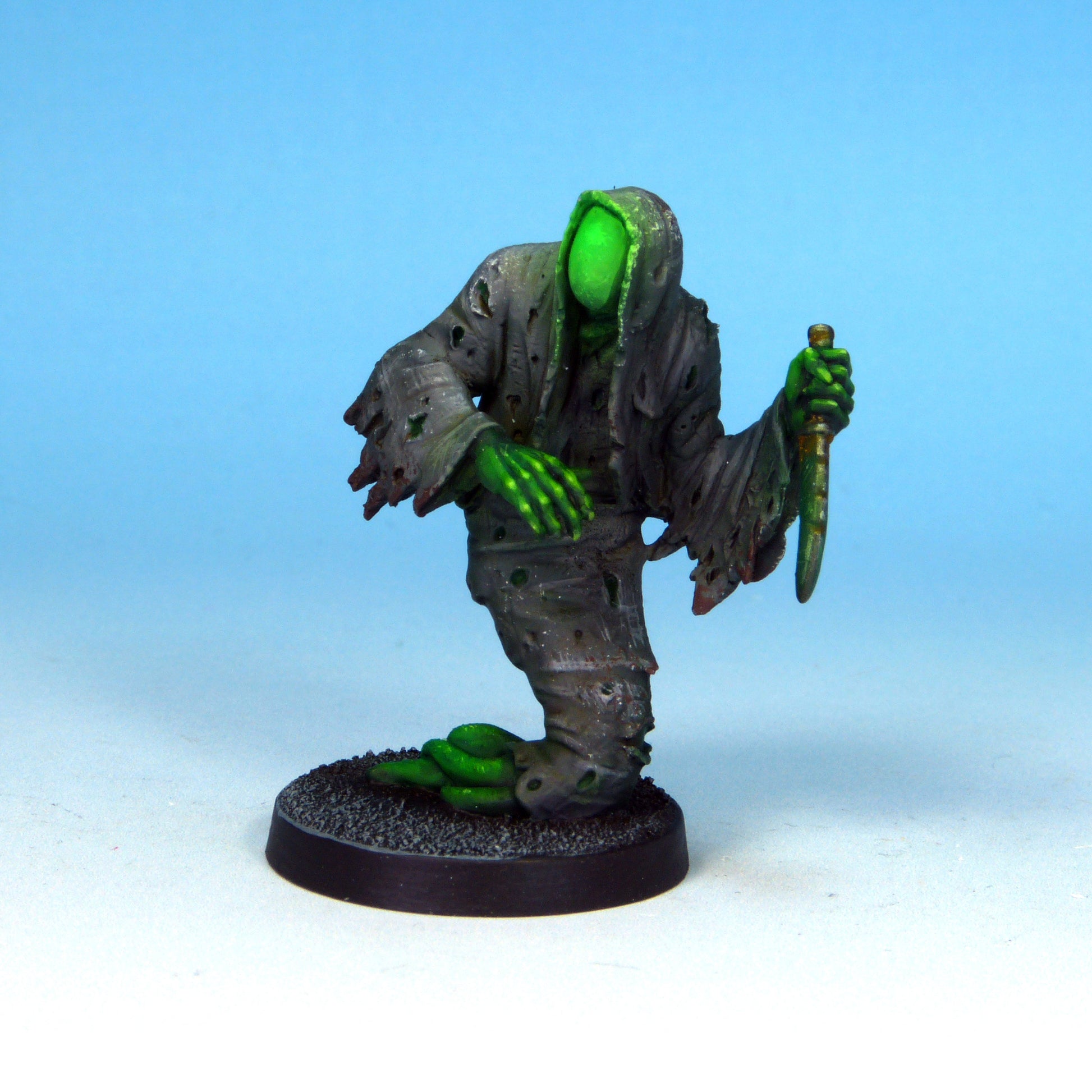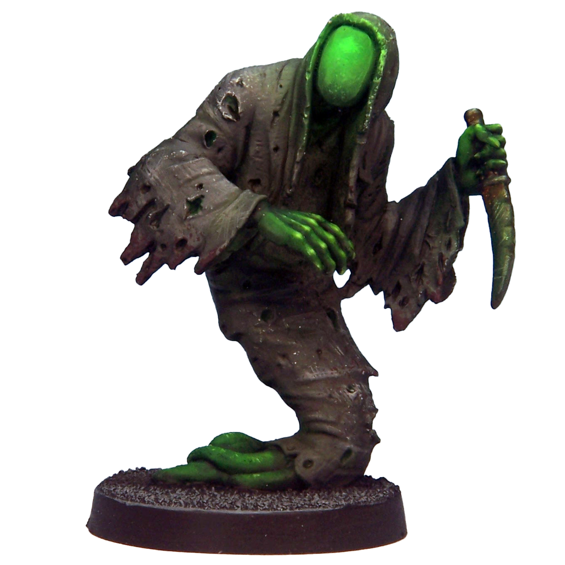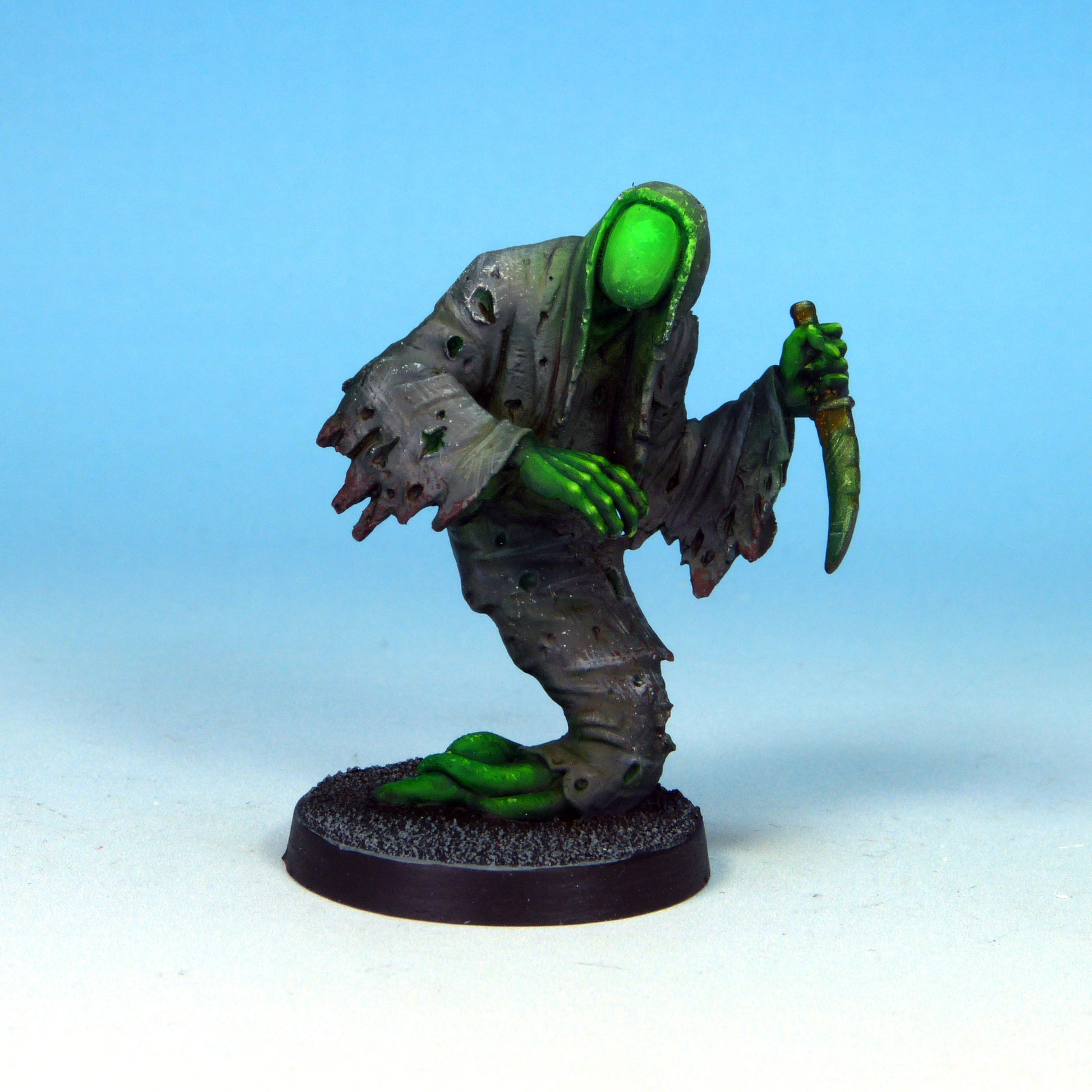 Sculpted by Andrew May. Cast in white metal and supplied with a plastic 30mm slottabase. Supplied unpainted. Painted for display by Mystic Spirals.