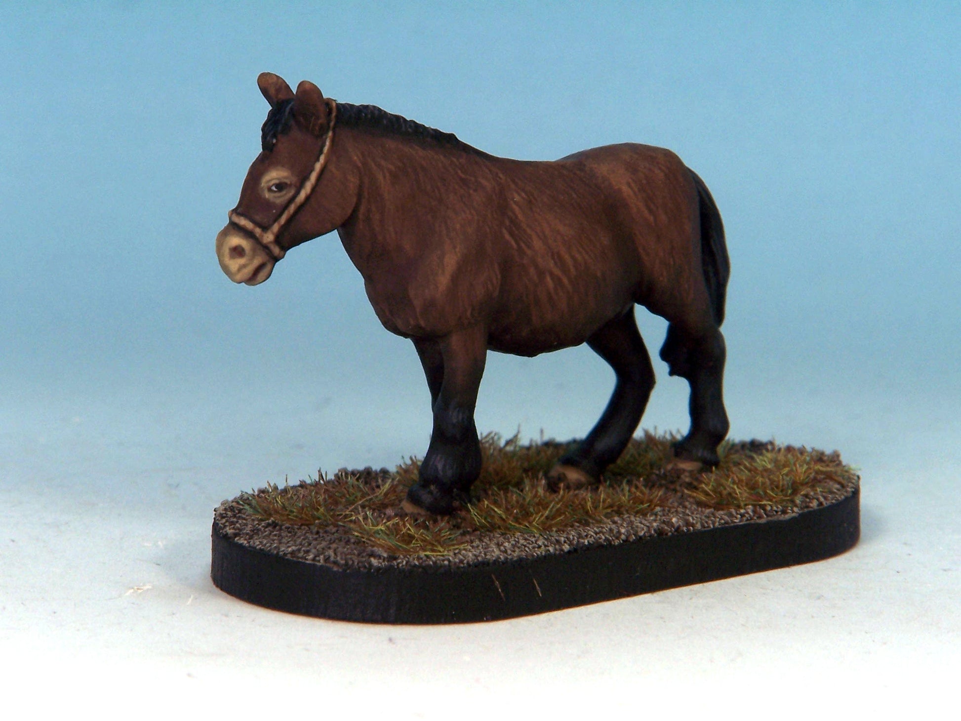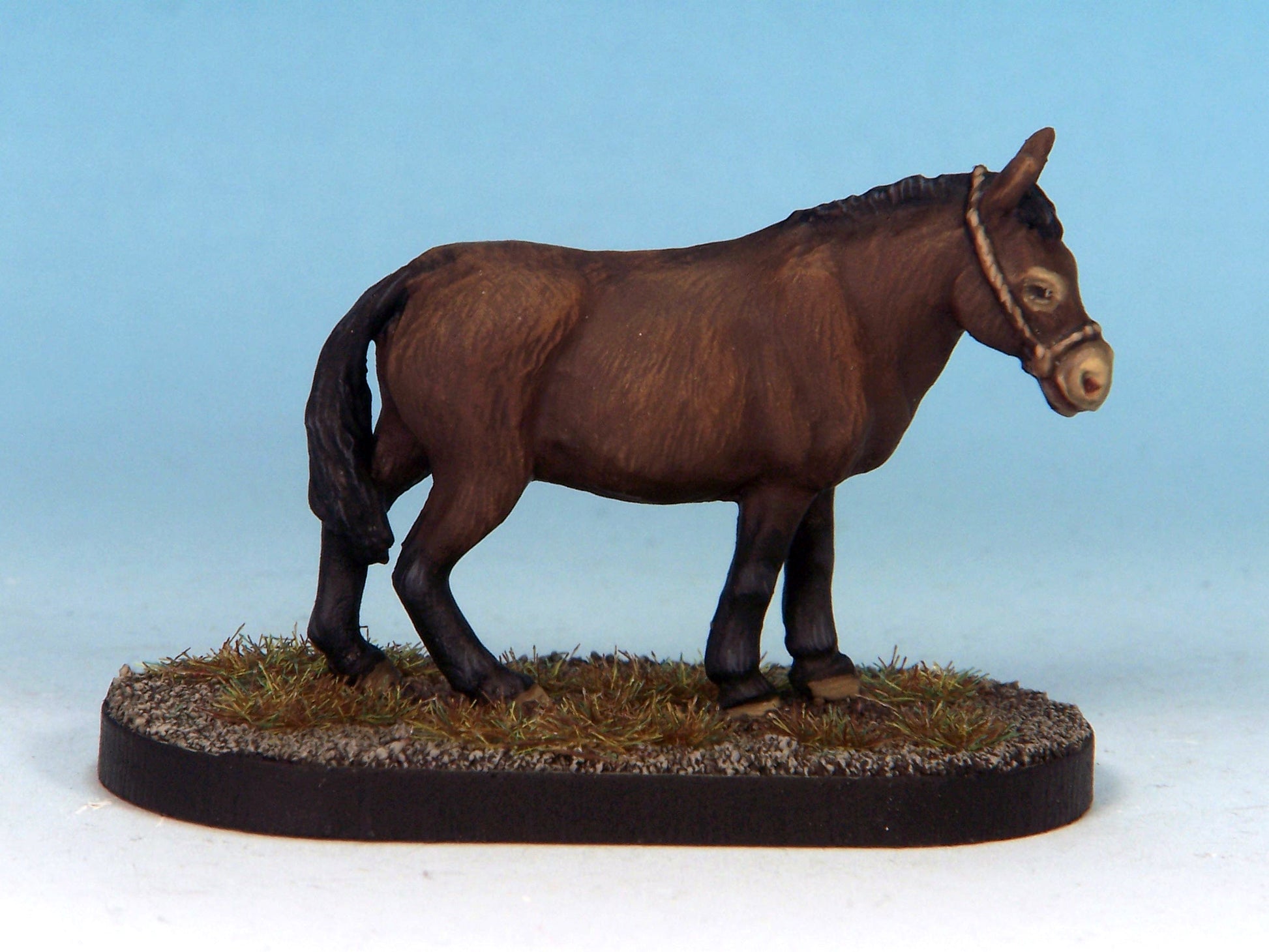 This figure represents a mule, often used by adventuring parties to carry supplies and equipment on wilderness or dungeon adventurers. This mule is unloaded, ready for adventure!