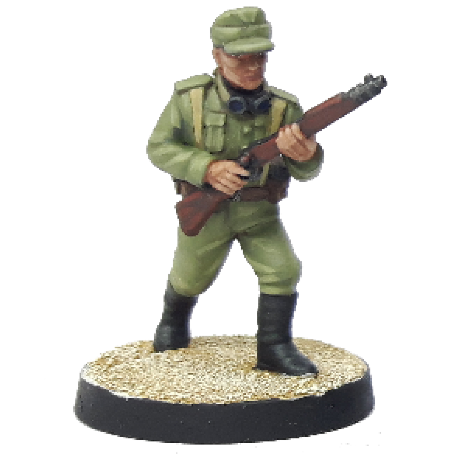 Sculpted by Ian Mountain and Ernst Veingart. Cast in white metal. Supplied unpainted and with a 25mm slottabase. Painted for display by John Atter.