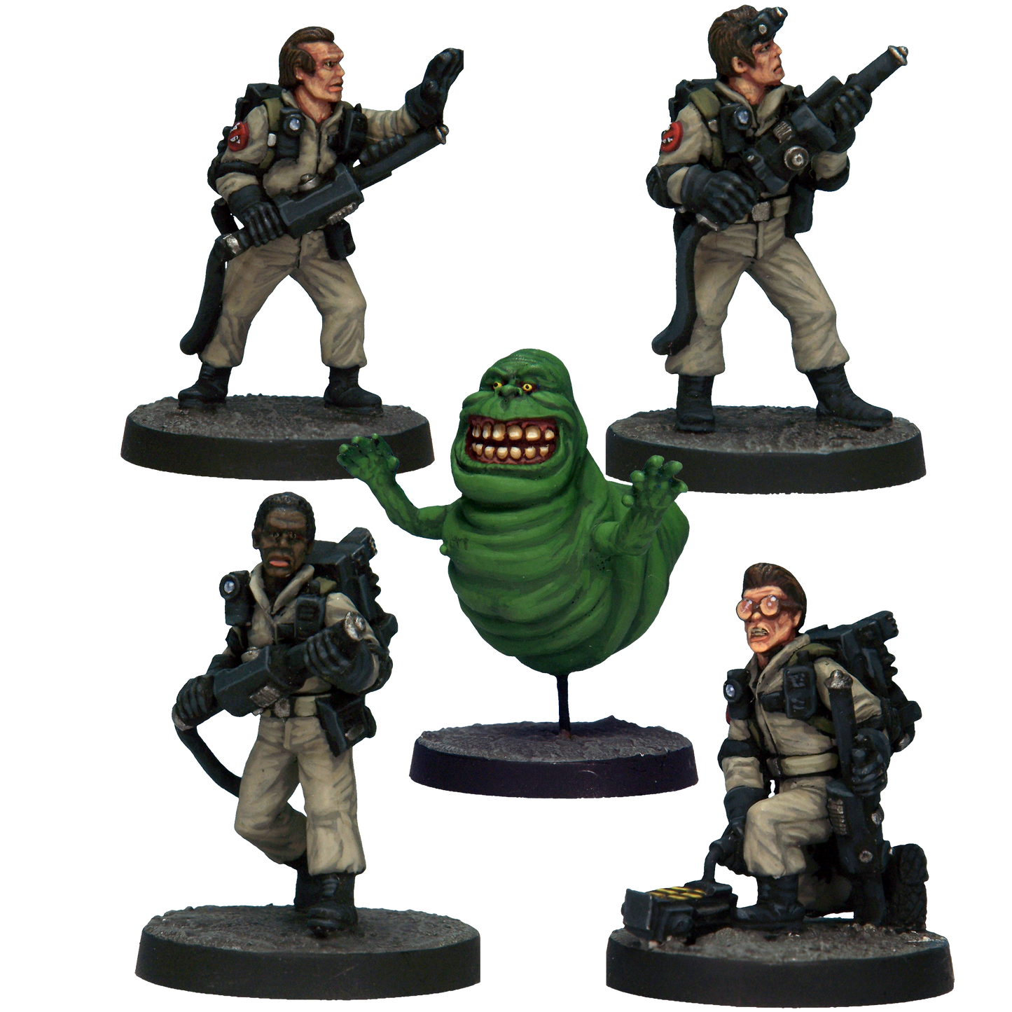 Having a problem with spirits? Then you need to call on these four paranormal exterminators armed with neutron sticks and entrapment boxes to help subdue any ectoplasmic entities – including the slimy ghost featured in this set.