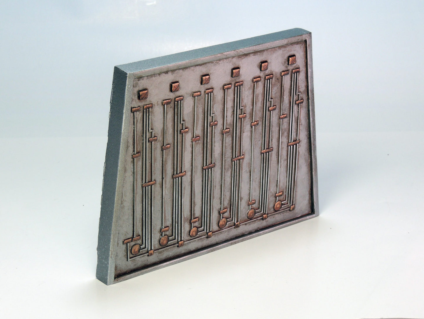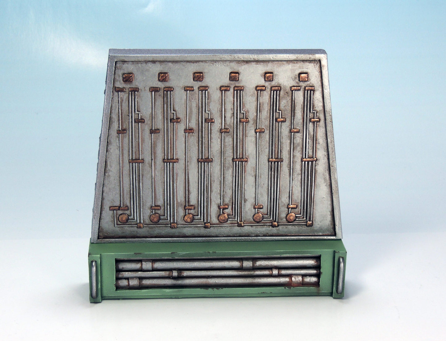 This resin kit comes in two parts – Pipe Plinth and Monitor Panel. The Pipe plinth measures 110mm wide and 22mm high. The Monitor Panel 110mm wide and 86mm high.