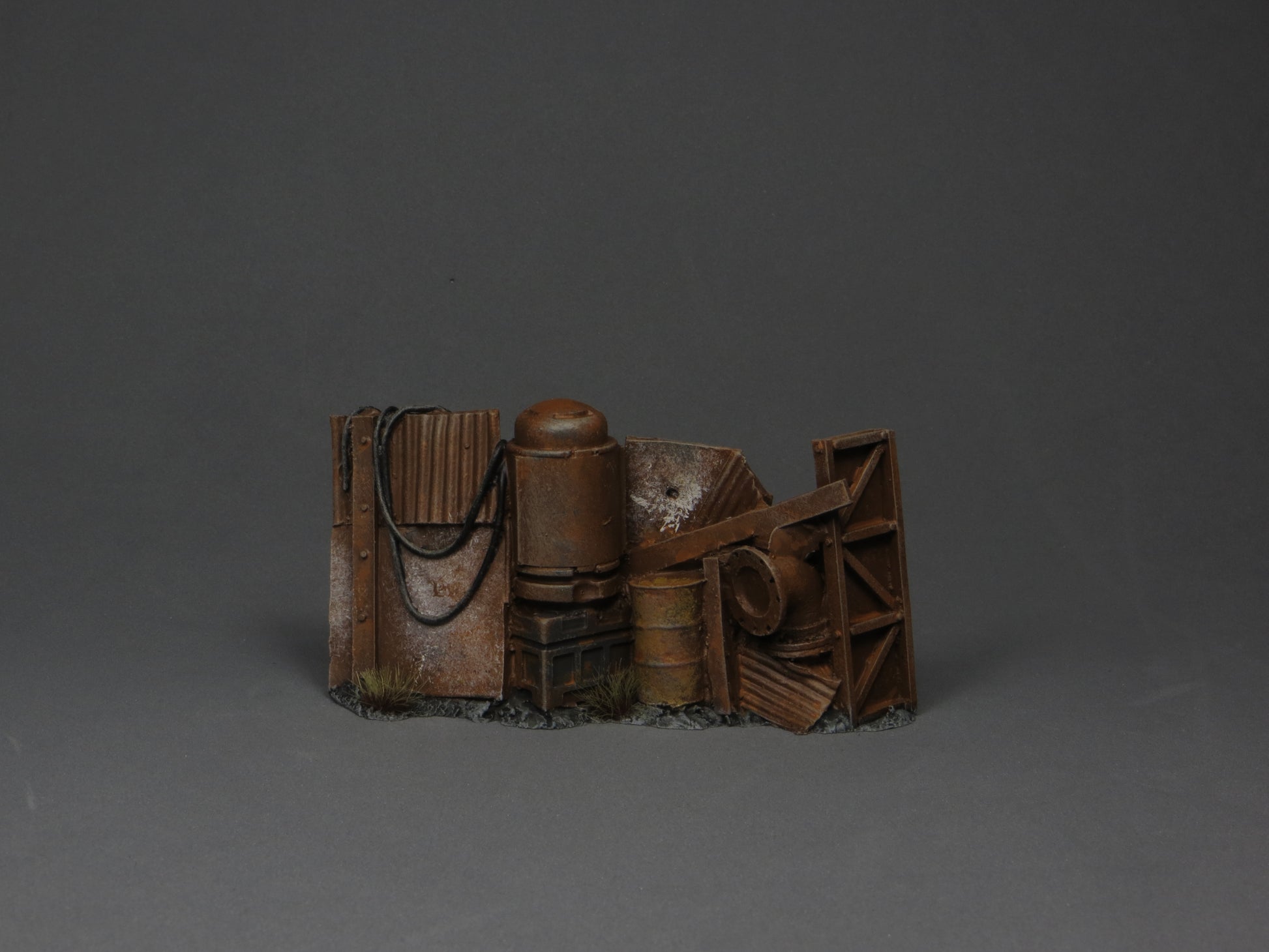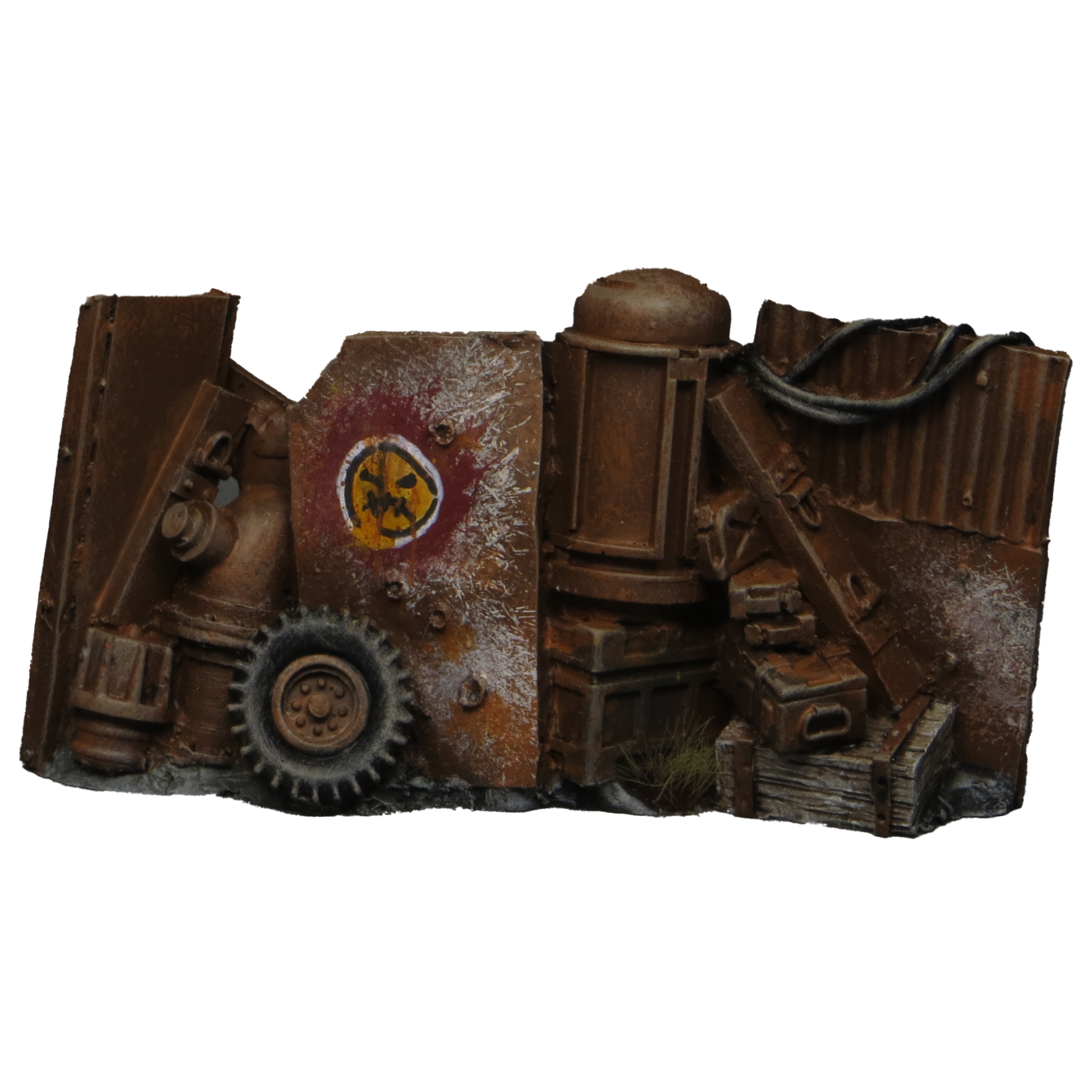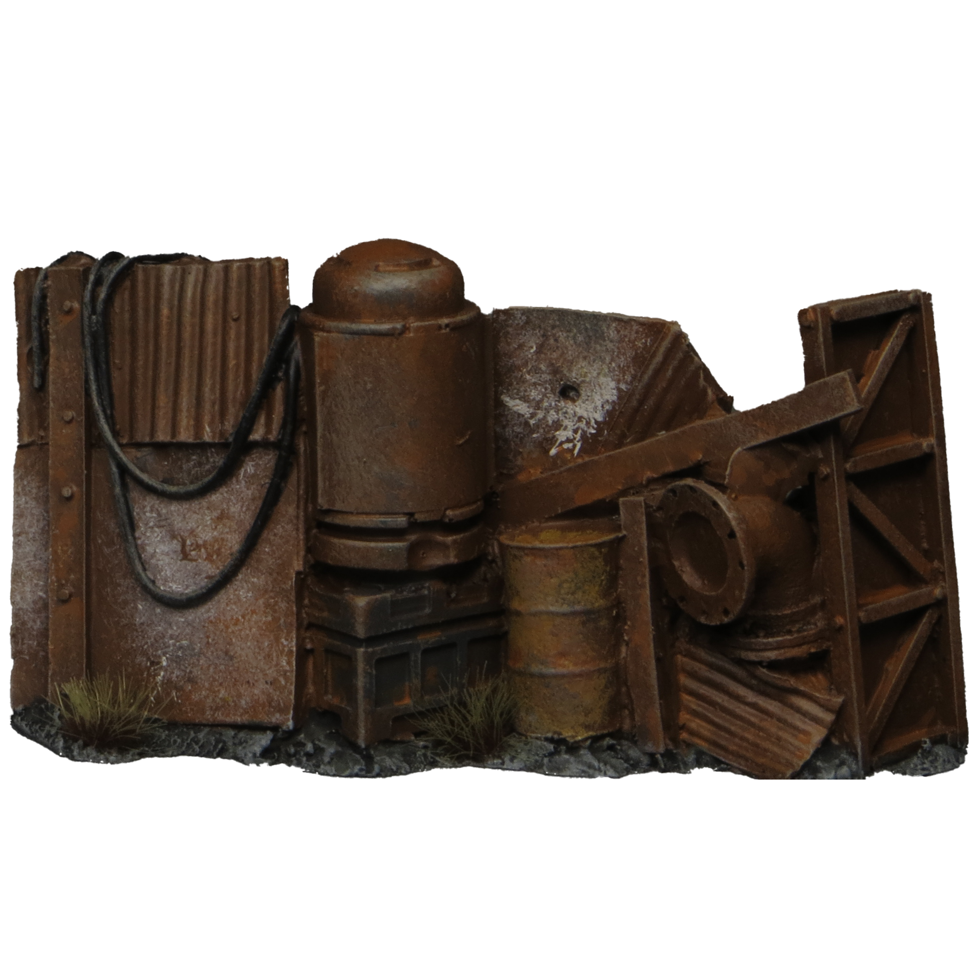 Pile it high hoarders! Various pieces of scrap metal, pipes and other disused items stacked head high. Perfectly suitable for any post-apocalyptic and quite a lot of modern settings. The models will provide full cover for 28mm miniatures.