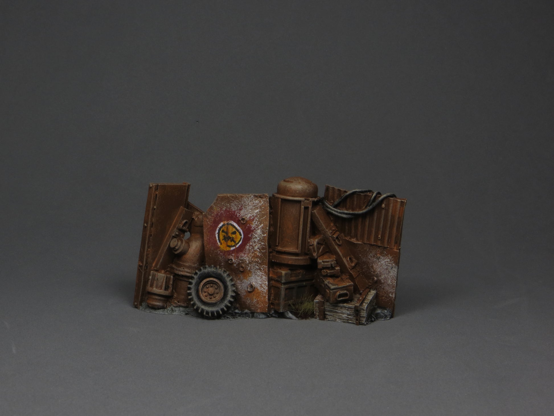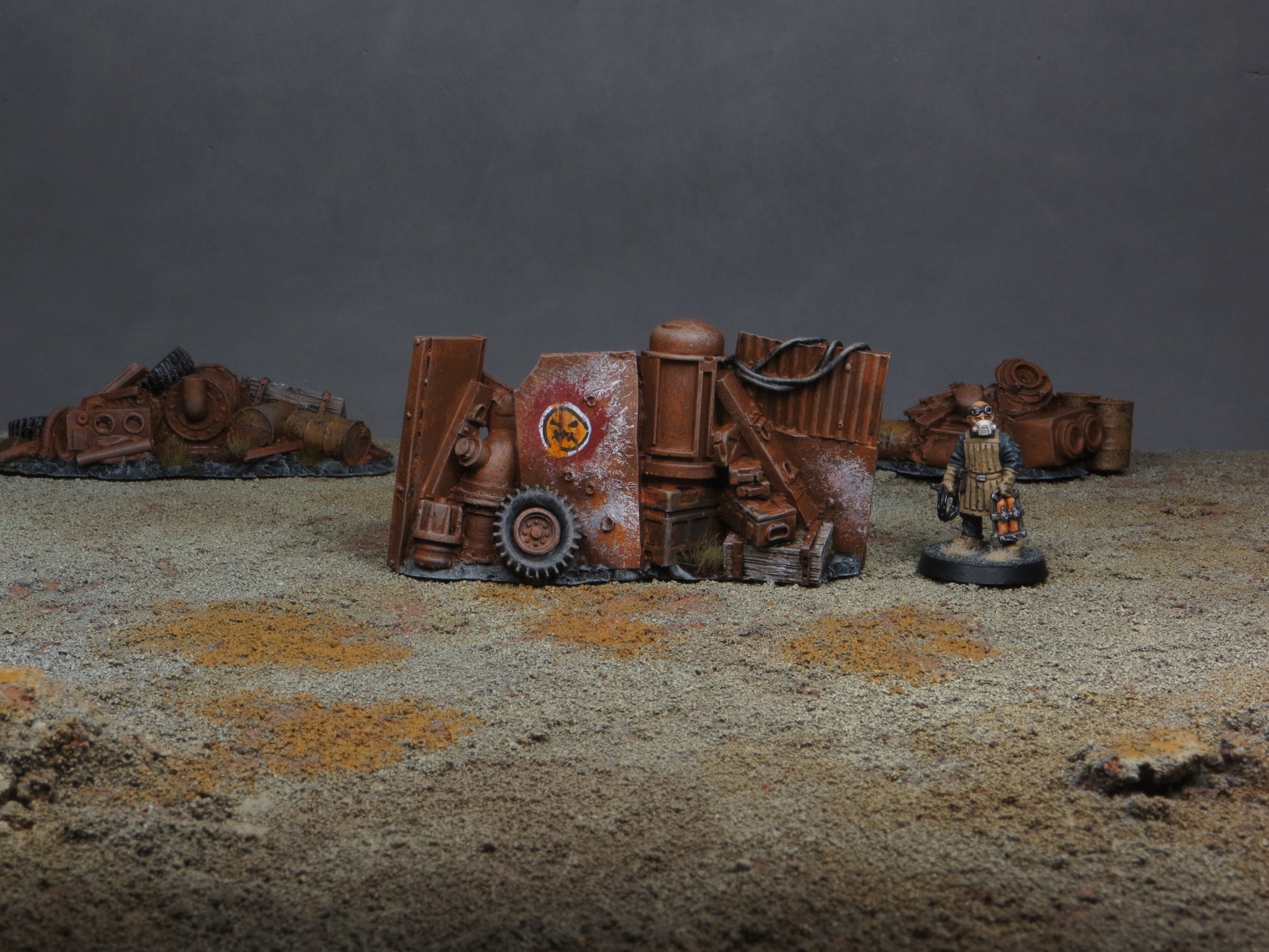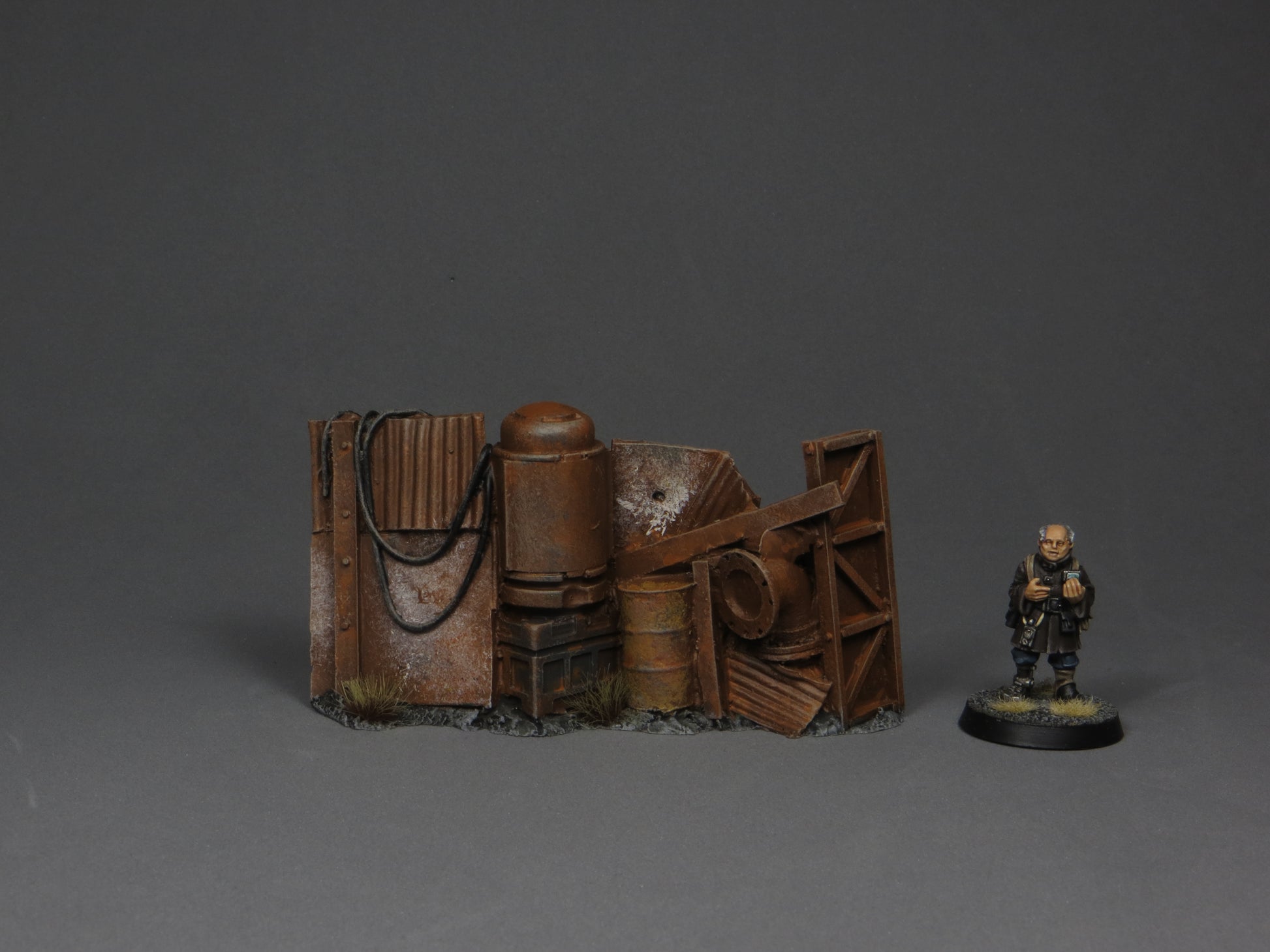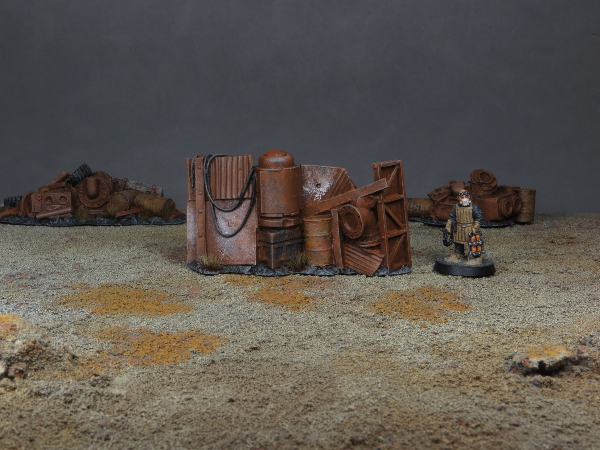 Pile it high hoarders! Various pieces of scrap metal, pipes and other disused items stacked head high. Perfectly suitable for any post-apocalyptic and quite a lot of modern settings. The models will provide full cover for 28mm miniatures.