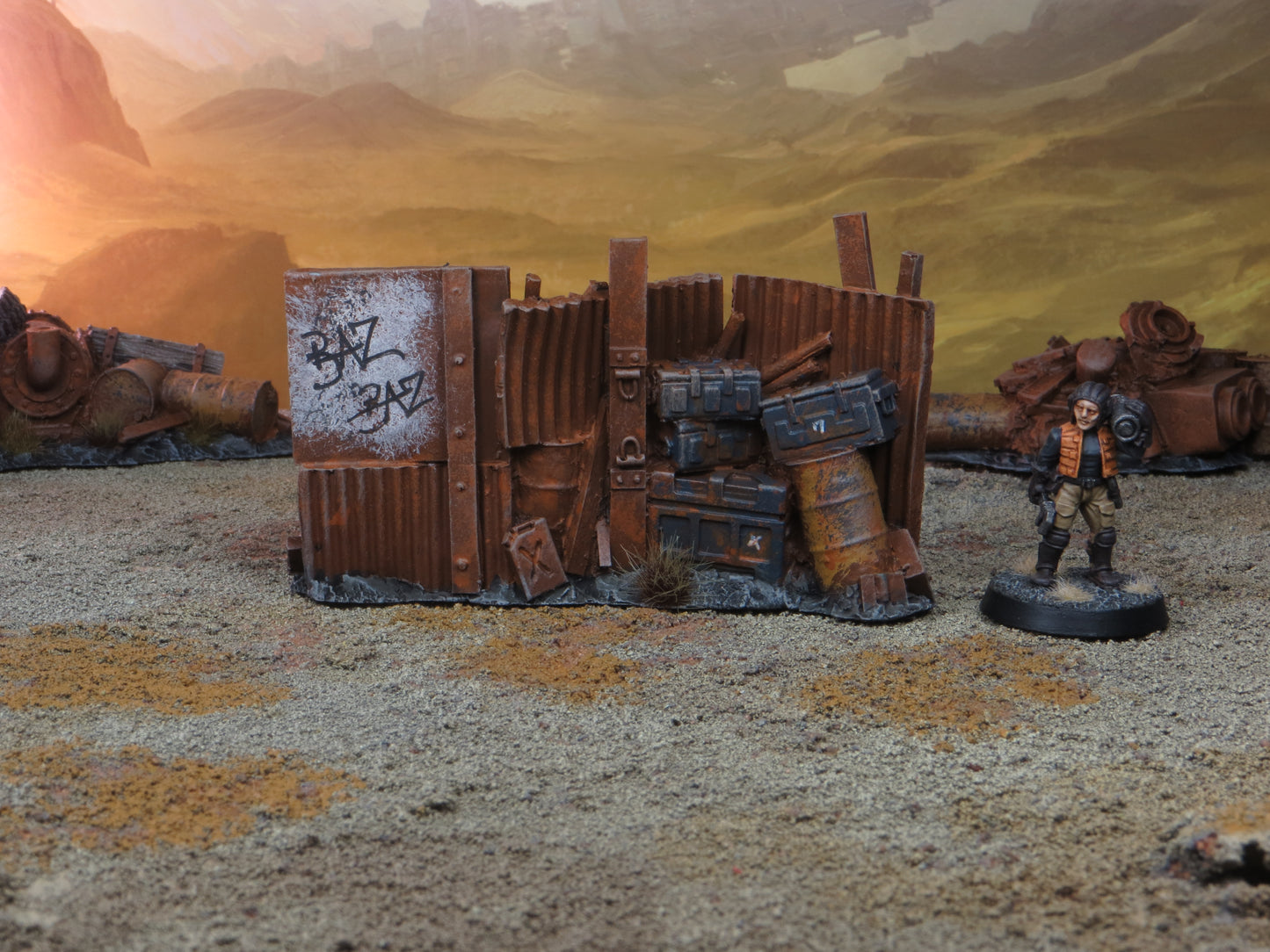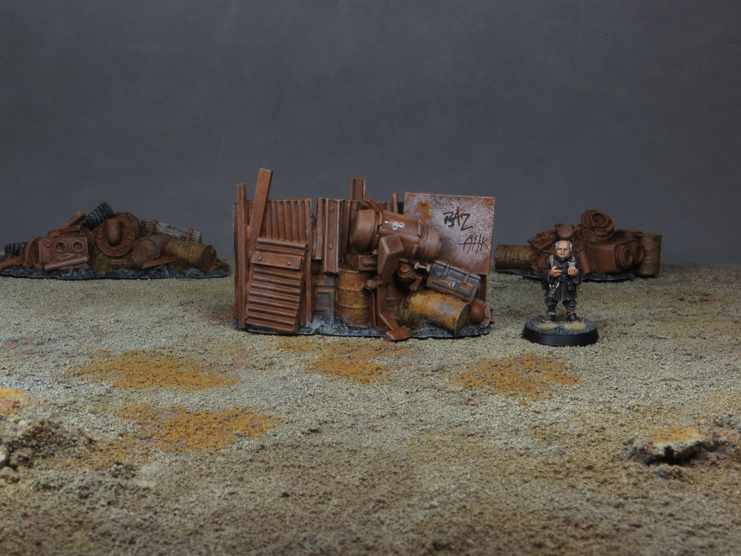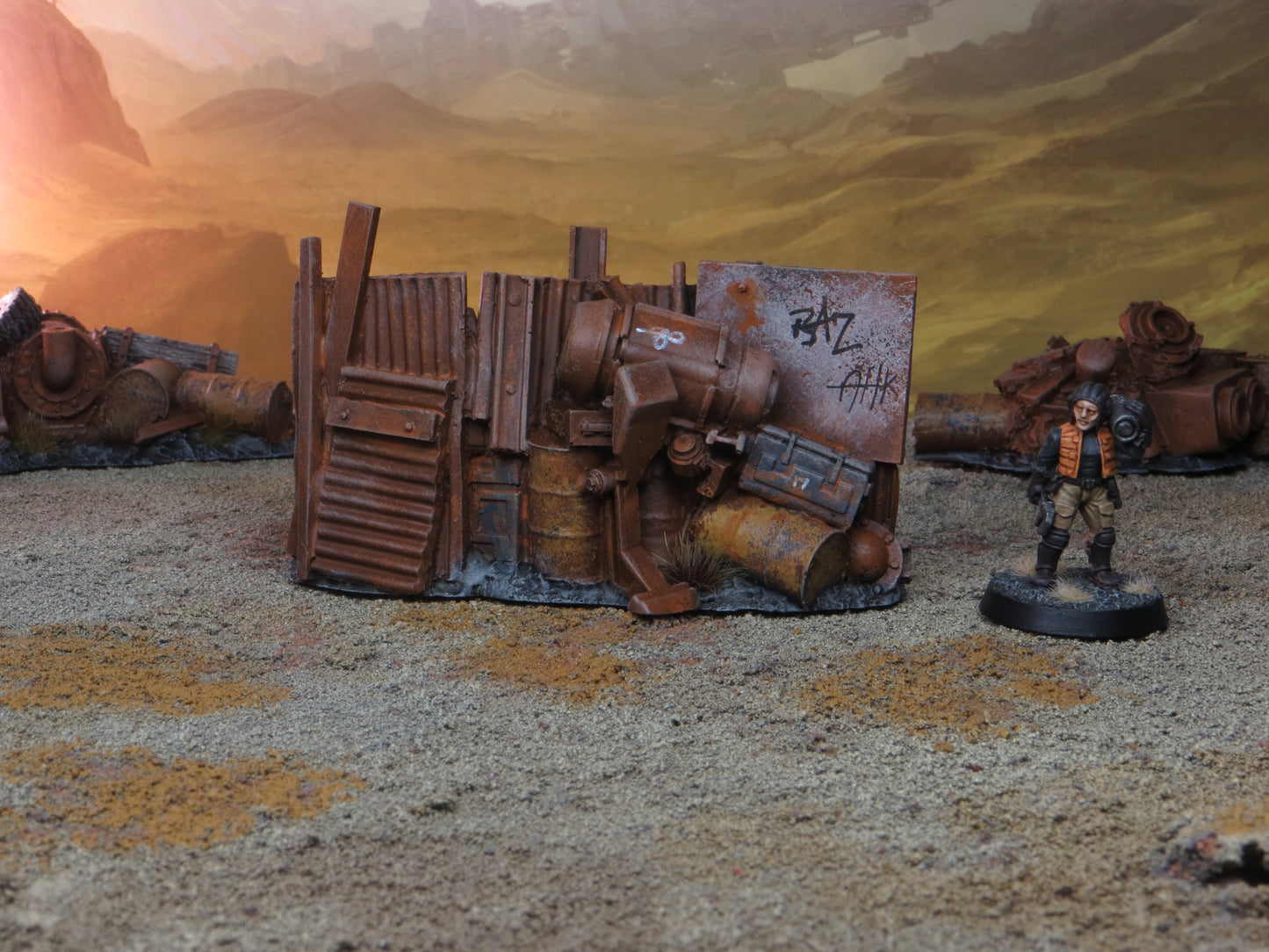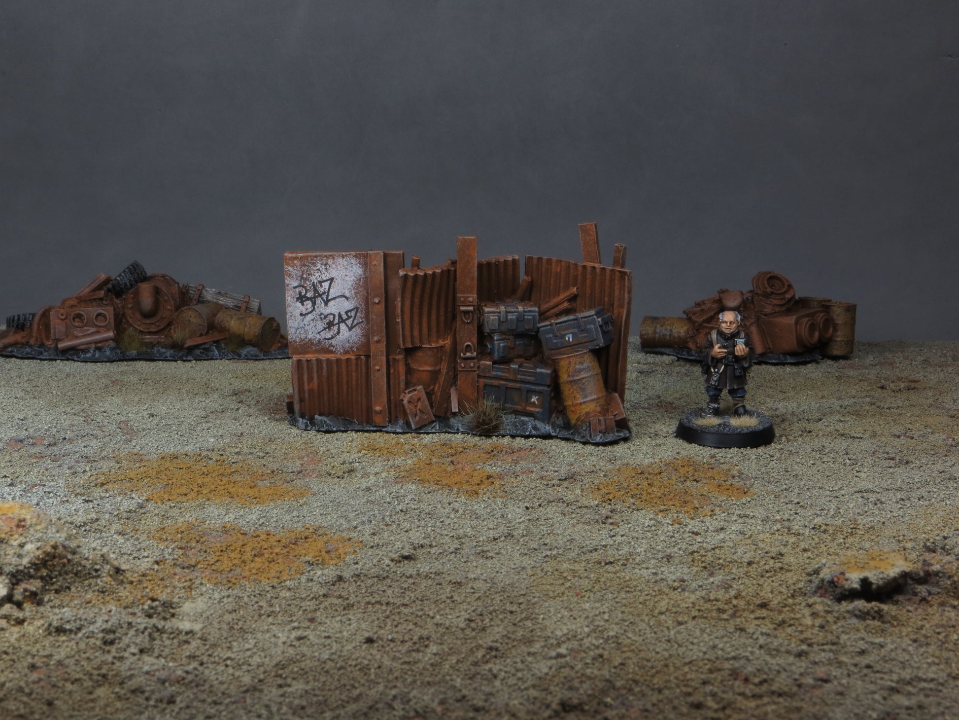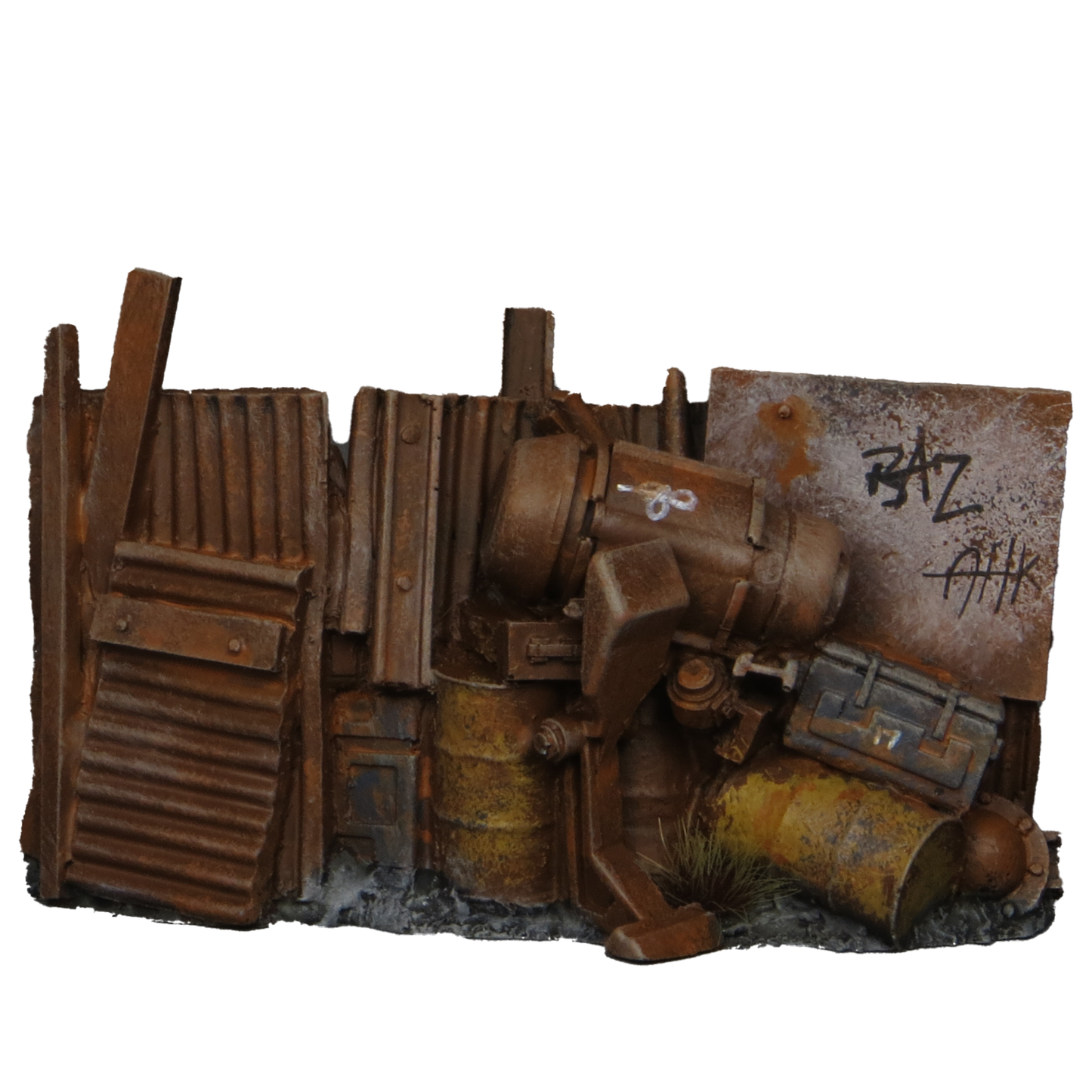 Pile it high hoarders! Various pieces of scrap metal, pipes and other disused items stacked head high. Perfectly suitable for any post-apocalyptic and quite a lot of modern settings. The models will provide full cover for 28mm miniatures.