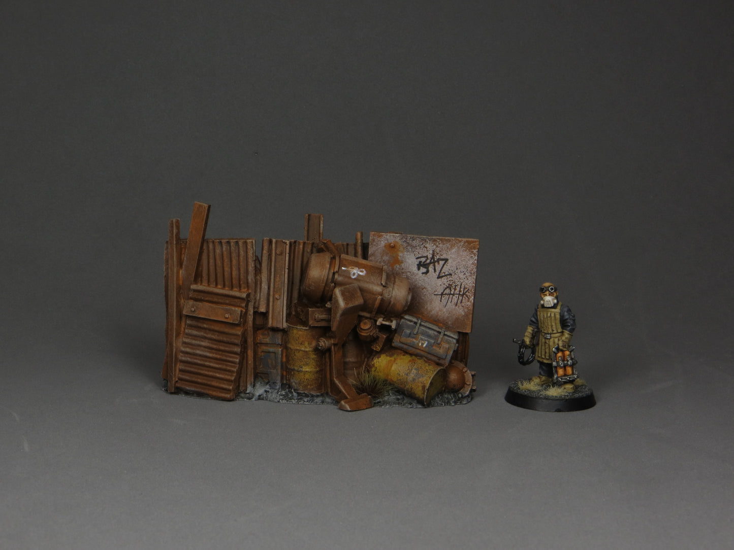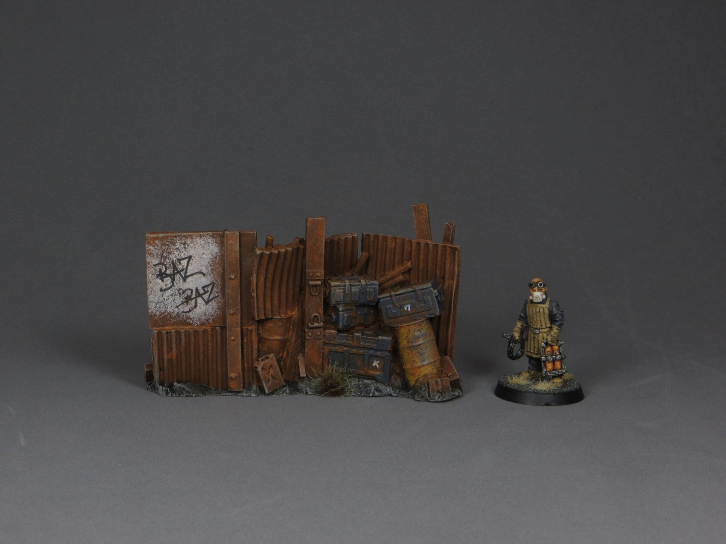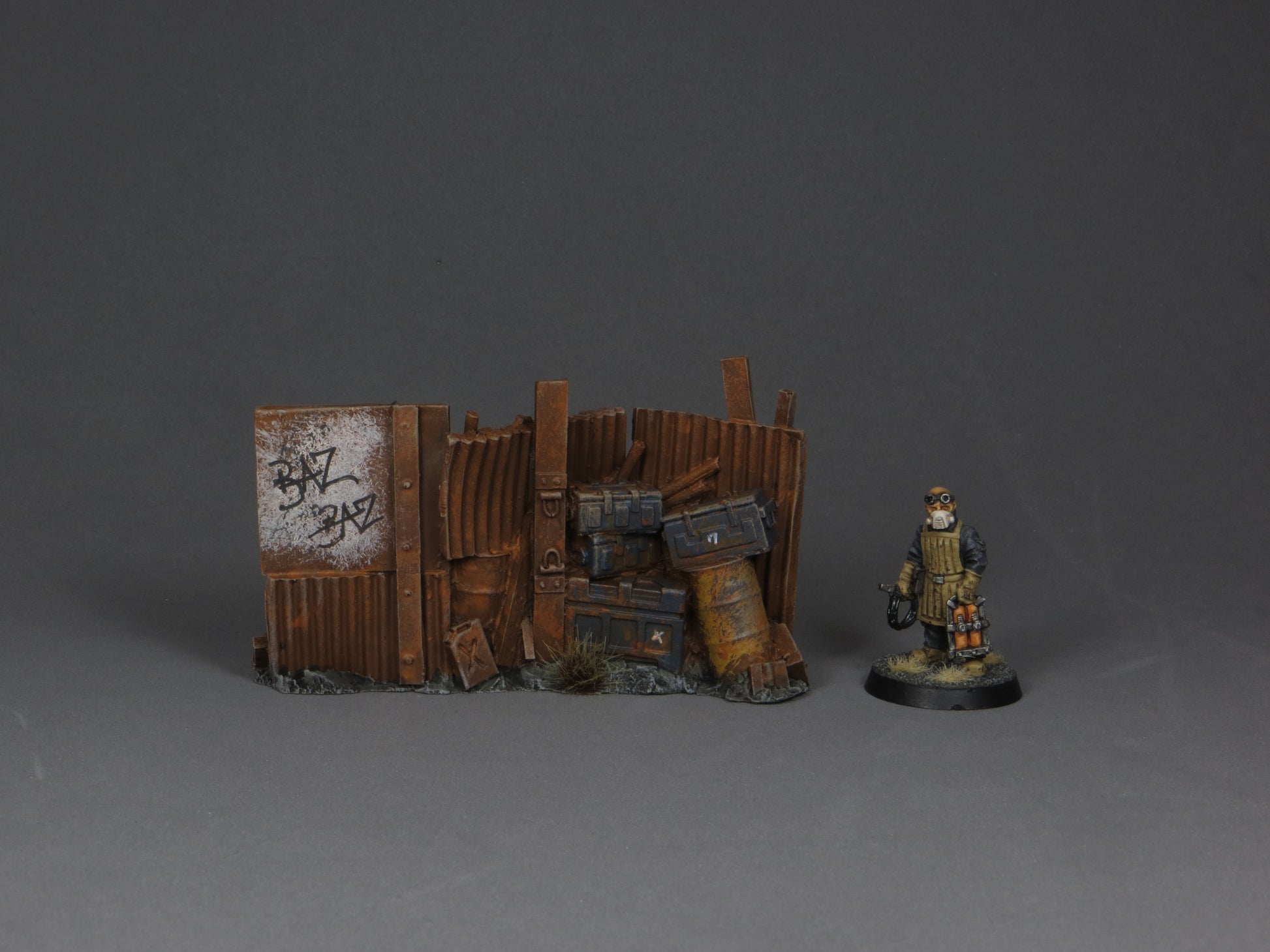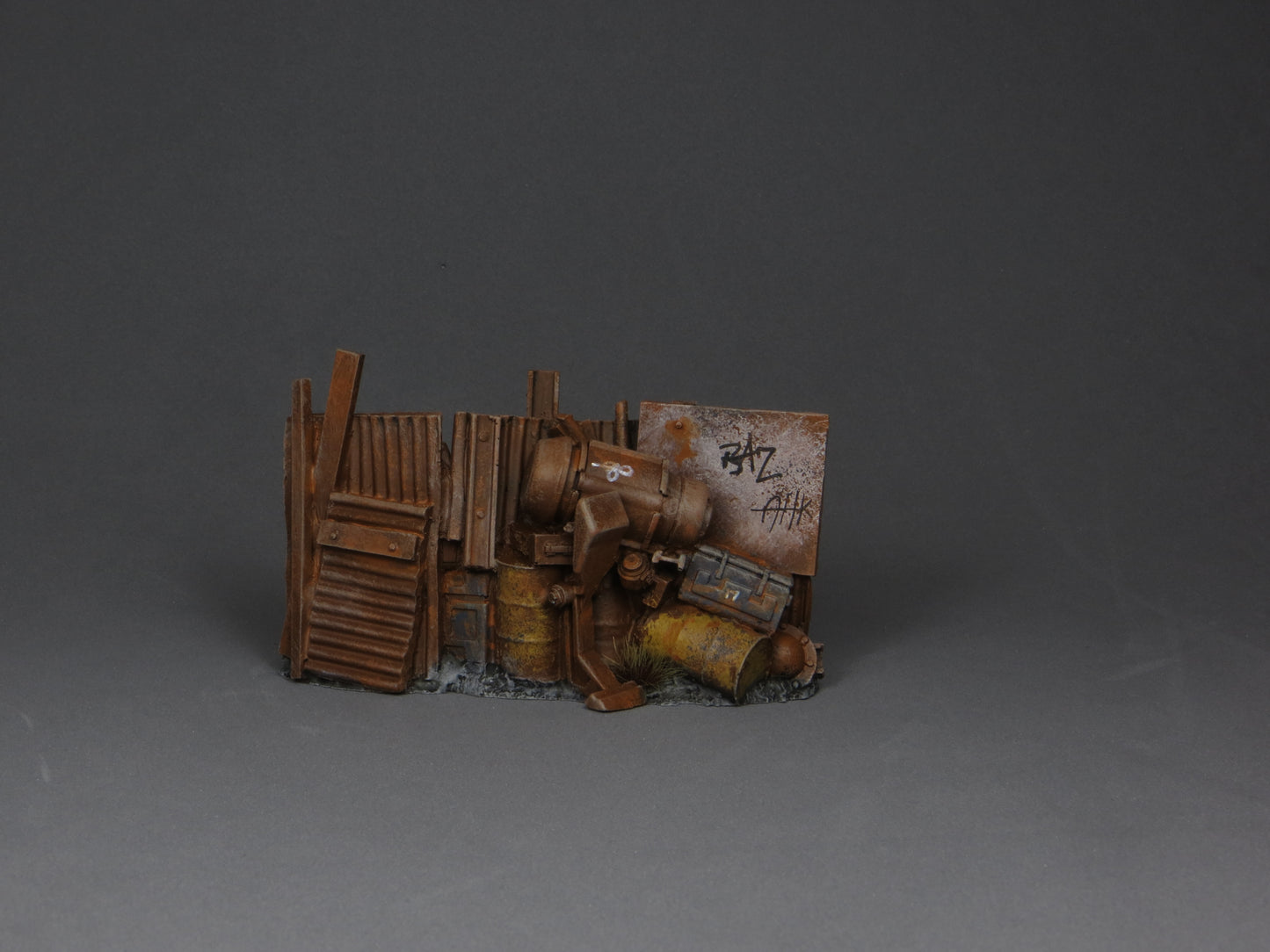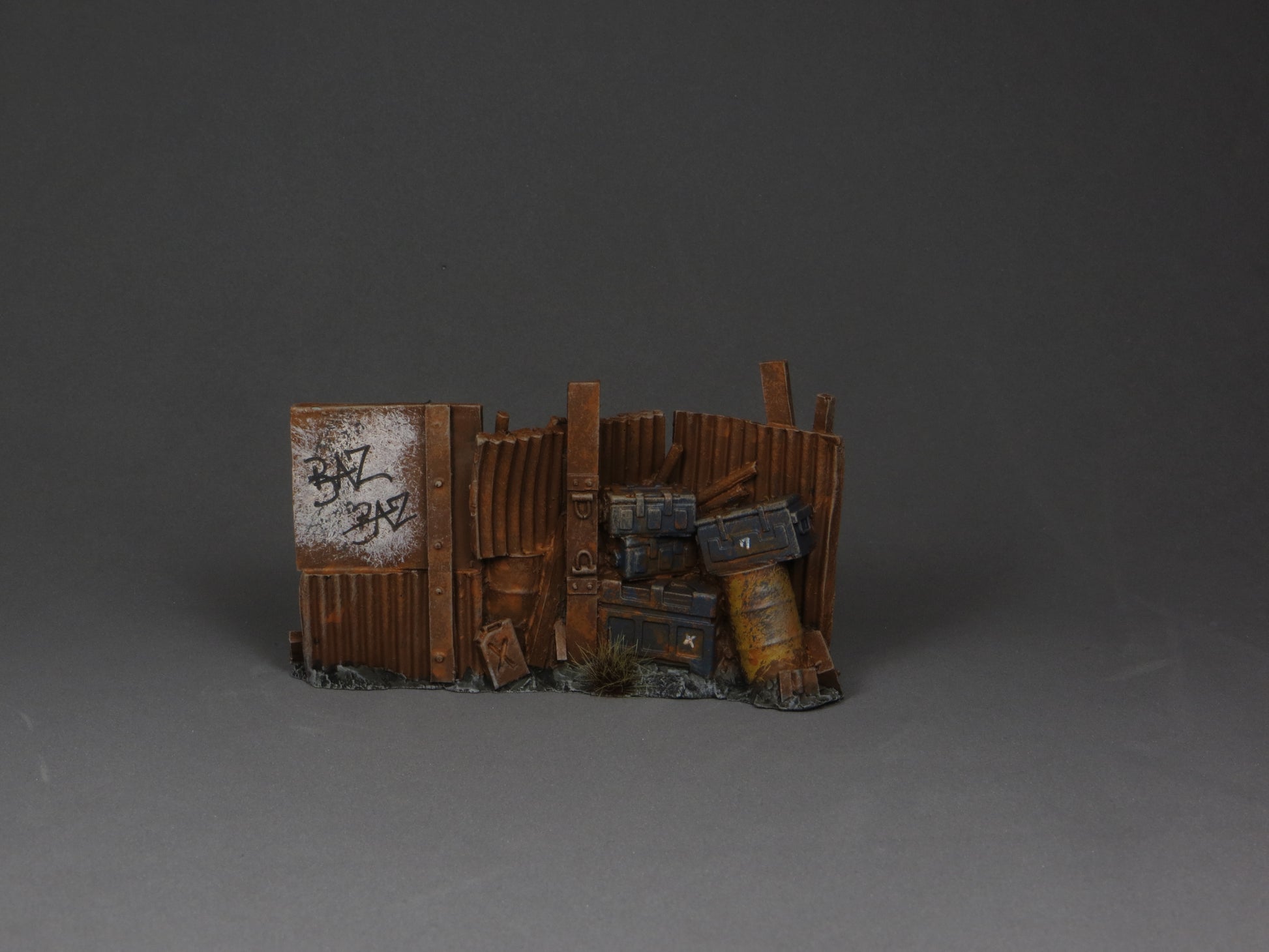 Pile it high hoarders! Various pieces of scrap metal, pipes and other disused items stacked head high. Perfectly suitable for any post-apocalyptic and quite a lot of modern settings. The models will provide full cover for 28mm miniatures.