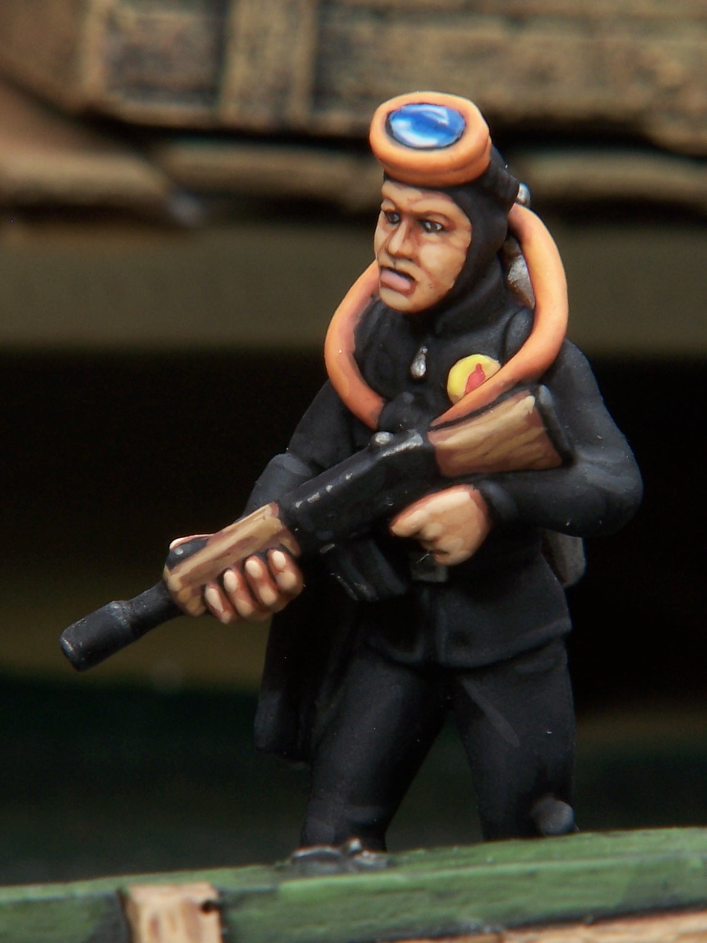 Sculpted by Ian Mountain. Cast in white metal. Supplied with 25mm round base. Require assembly. Heads on the tab. Painted for display by Kevin Dallimore.
