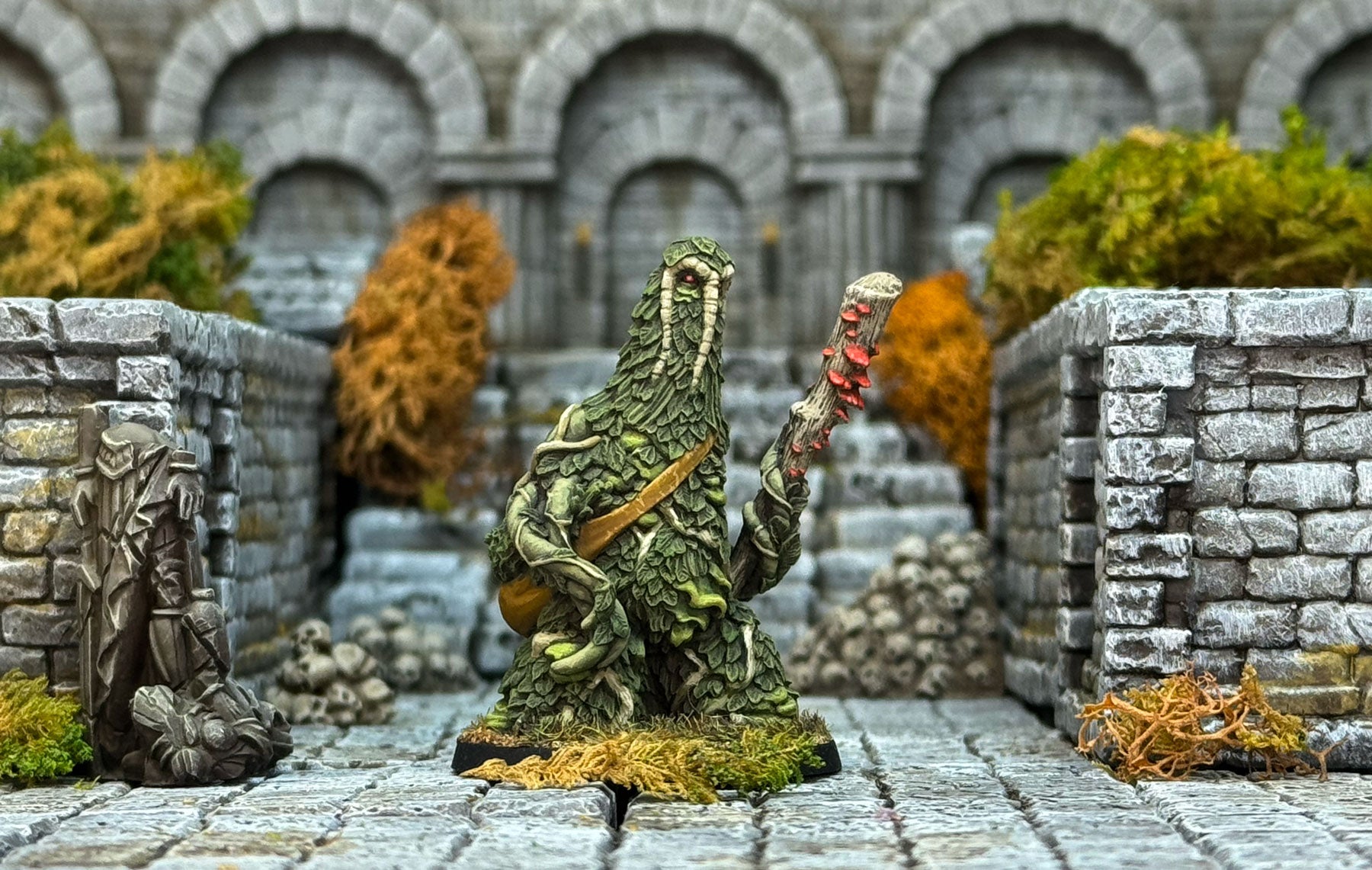 These intelligent, peaceful flora occupy swamps and marshes in many fantasy worlds. Some grow to be able to command natural magics to restore their people and defend their brackish borders from predators and invaders. This model stand 50mm tall.