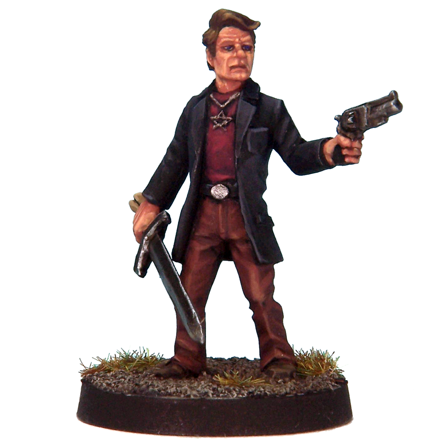 Sculpted by Ian Mountain. Cast in white metal. Painted for display by Andrew Taylor. Supply unpainted with a 25mm slot base.
