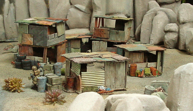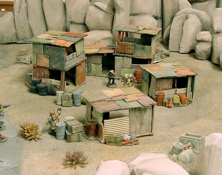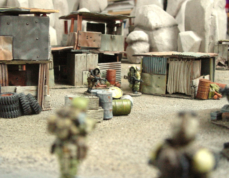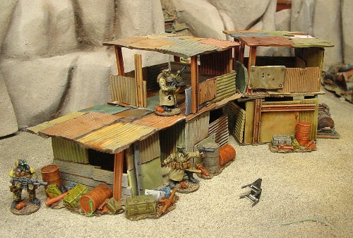 Enough accessories are provided to fill the camp: crates, barrels, tires, and piles of garbage to provide cover during skirmishes.