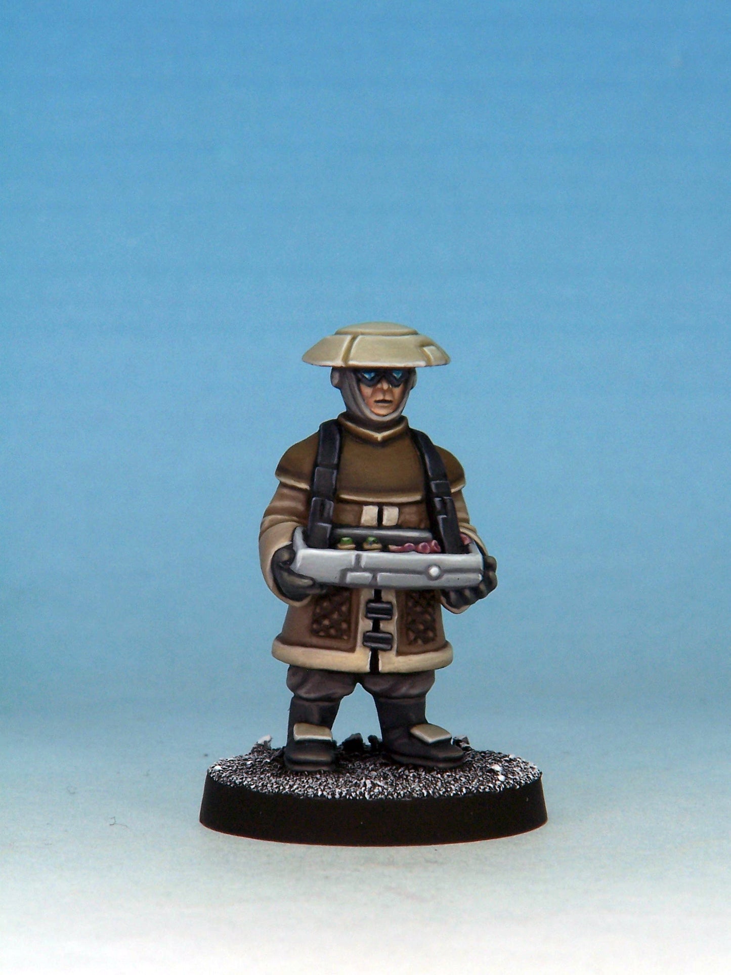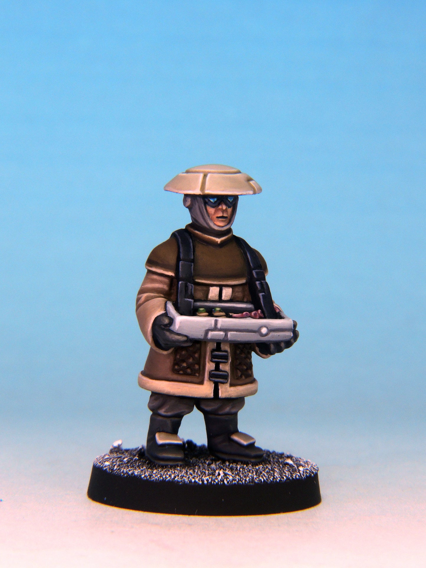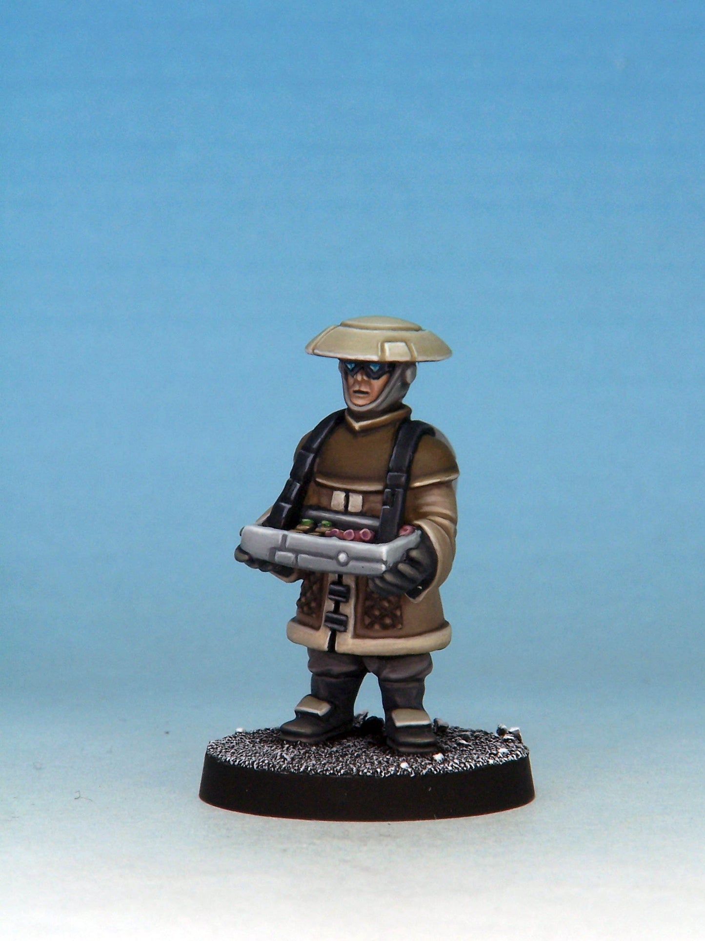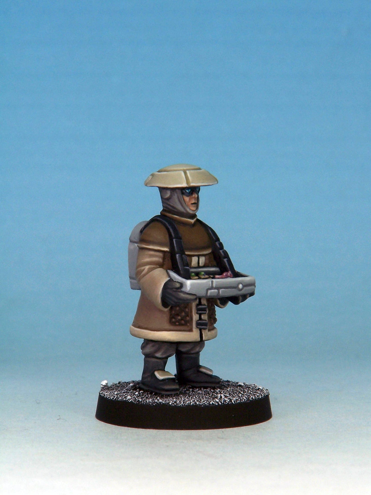 Sculpted by John Pickford. Cast in white metal. Painted for display by Simon Bradley. Sold unpainted and supplied with a 25mm base.