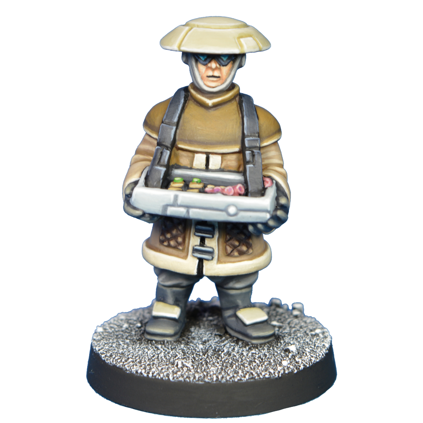 Feeling peckish while wandering around the marketplace, then pick up a snack from food vendor Lazlo Zhao, peddler of cronk-burgers, algaeslurps and bolafingers.
