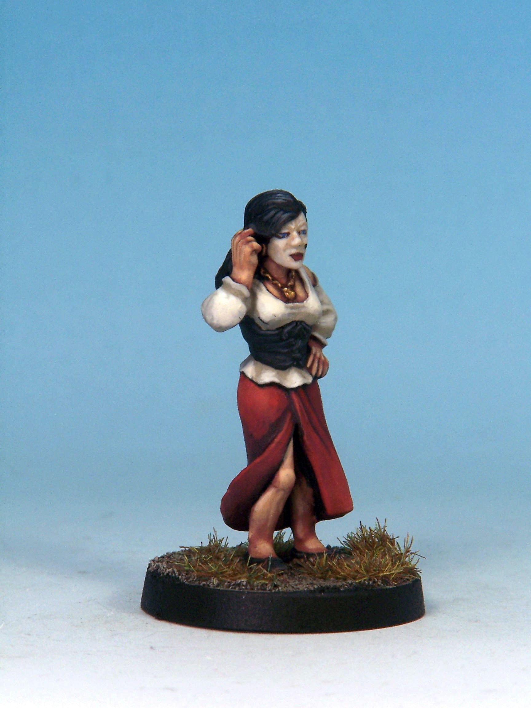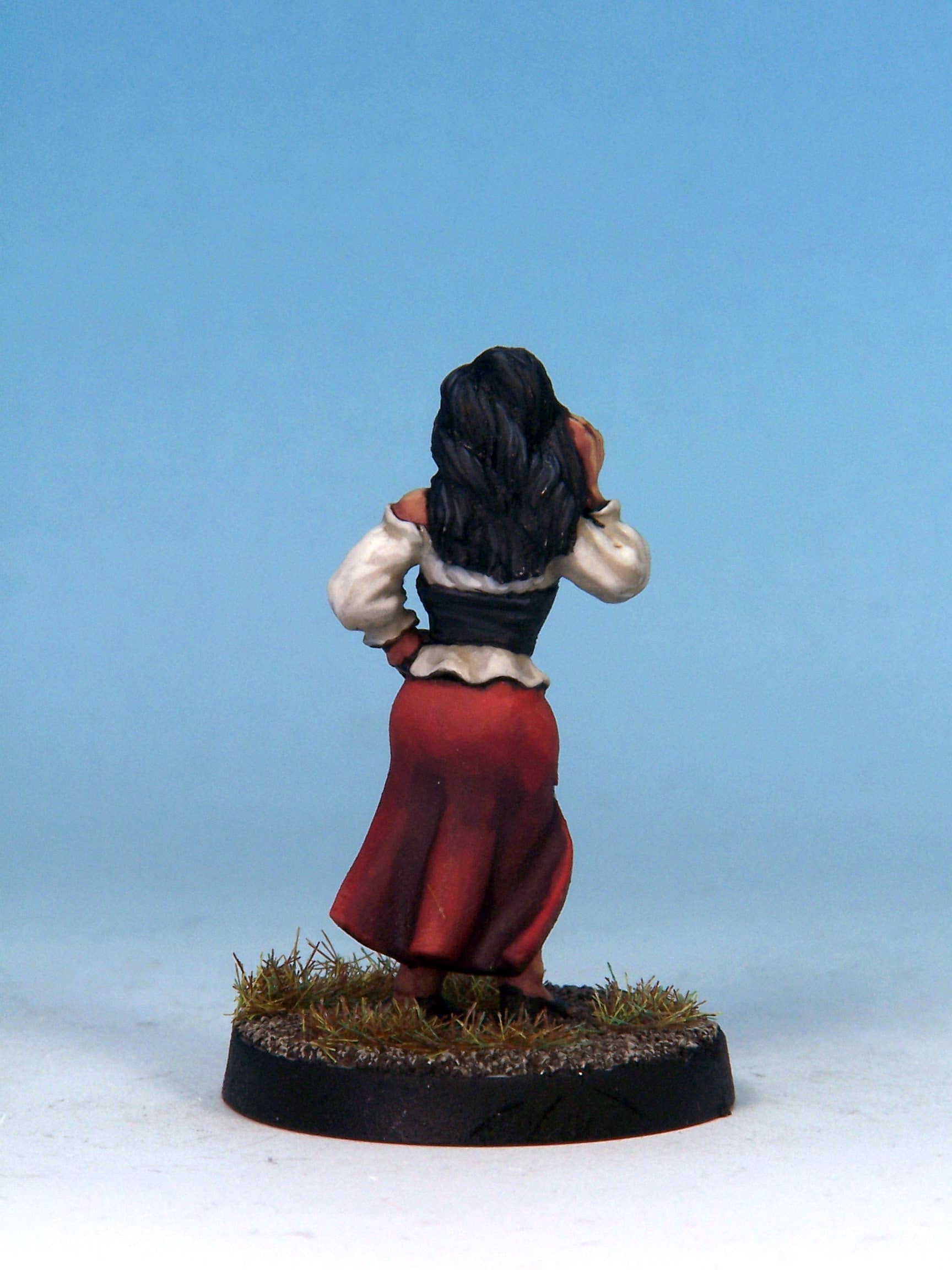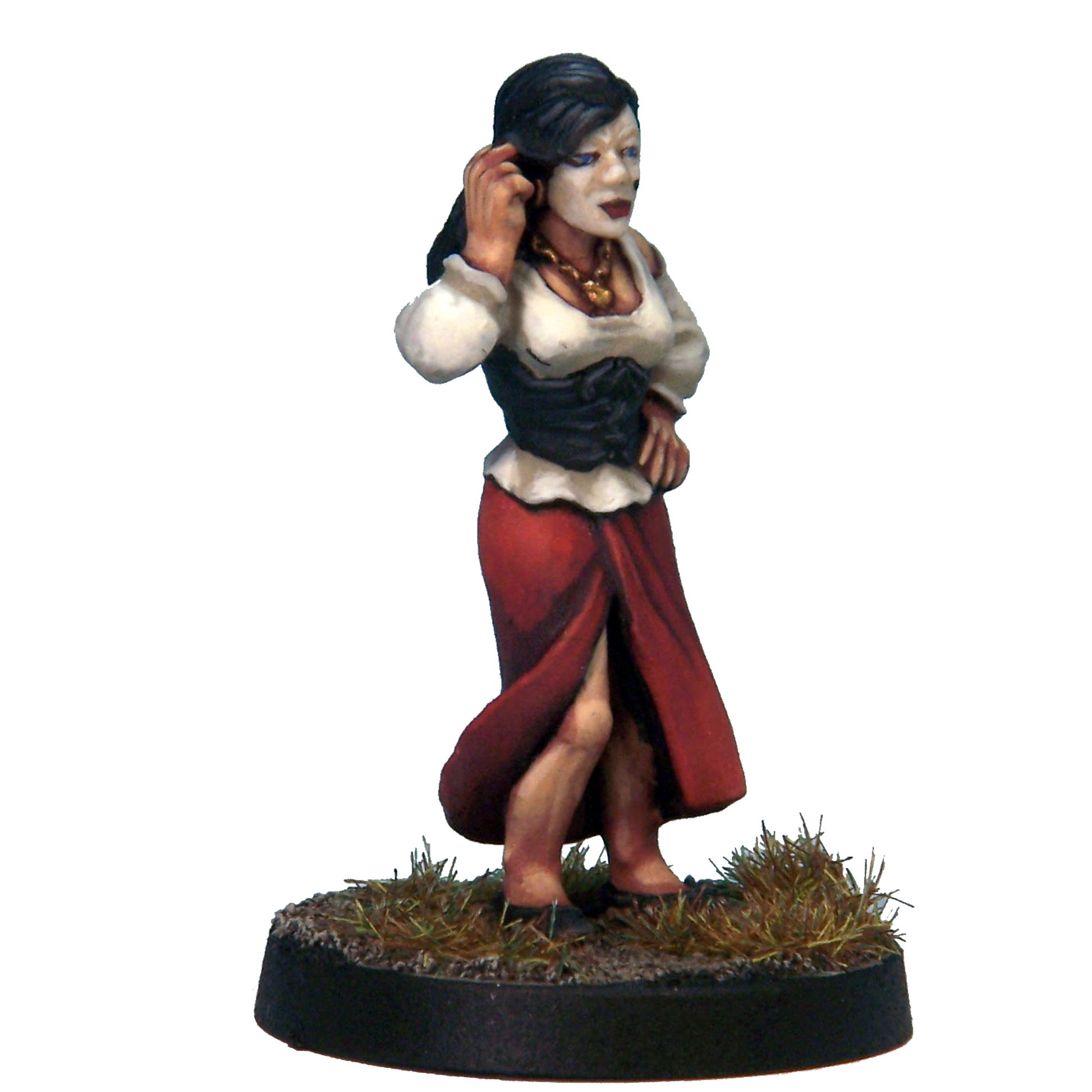 This figure represents a brazen strumpet, a lady of the night, a frequent inhabitant of a fantasy tavern or city street. She wears a blouse and bodice, and far too much make-up! It is a single-piece casting which requires no assembly.