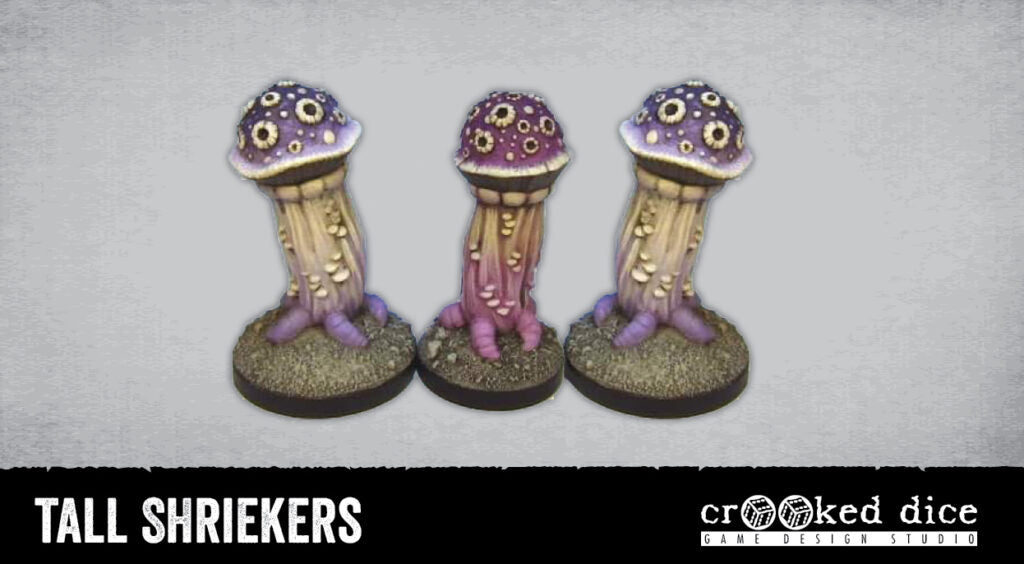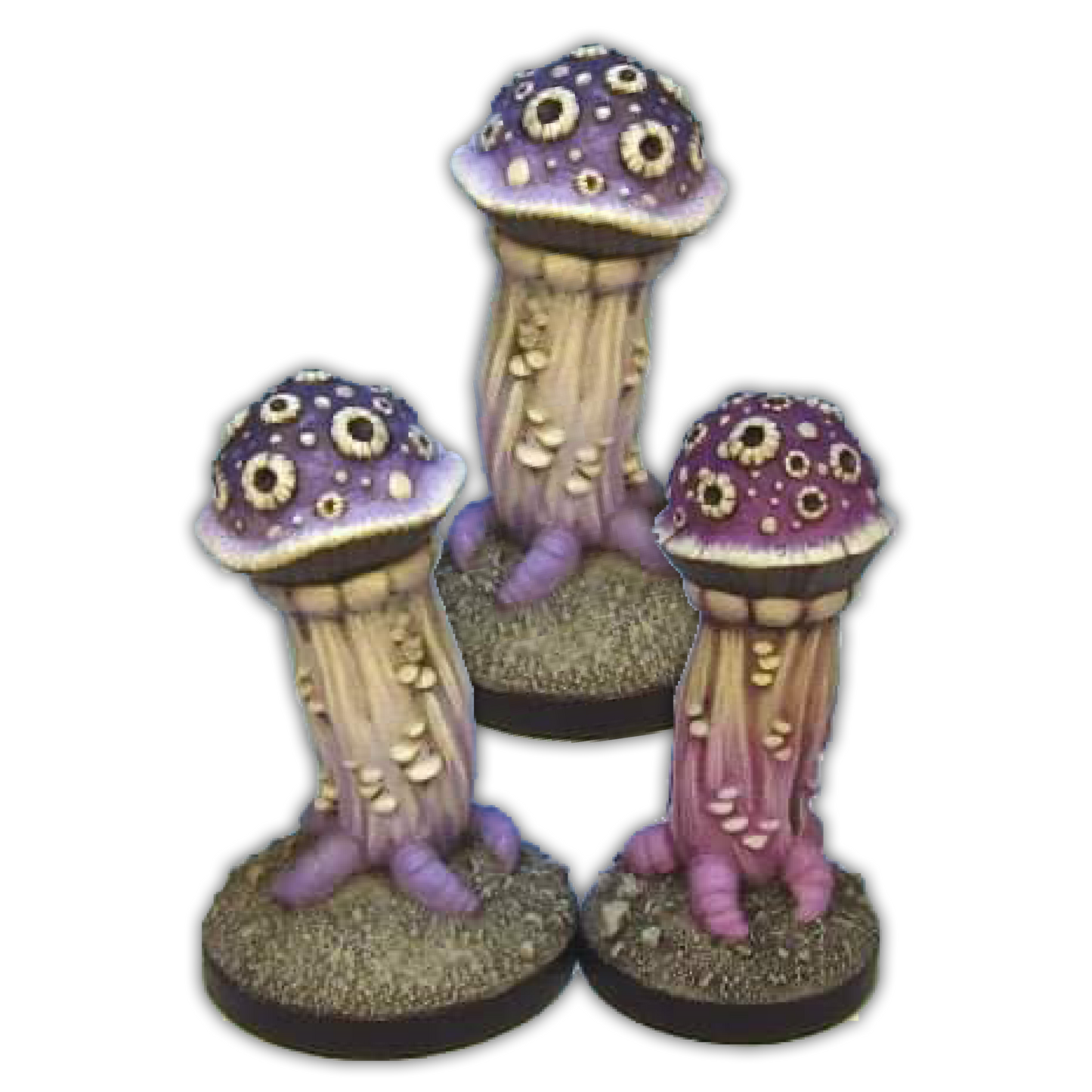 This set contain three resin mushrooms standing approximately 35mm tall and are pictured on 25mm base – not supplied. Sculpted by Iain Colwell. Supplied unpainted. Viking model shown for scale and not included.
