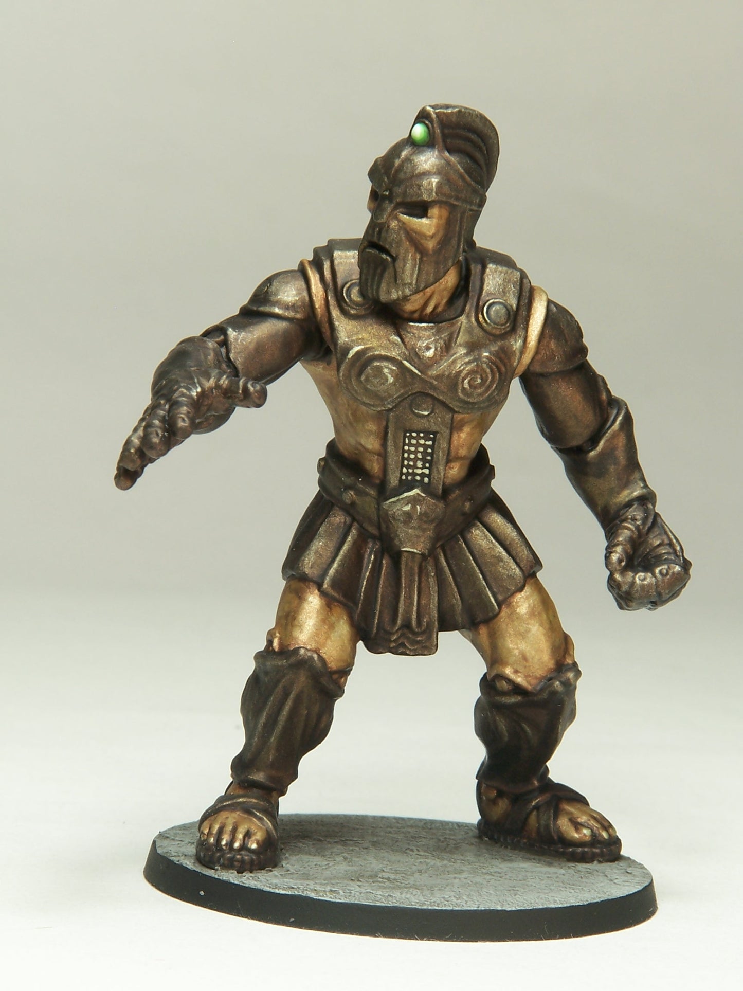 Sculpted by Jo Brumby. Cast in resin. Some assembly required, Talos stands approximately 60mm tall. Provided with a 50mm round base.