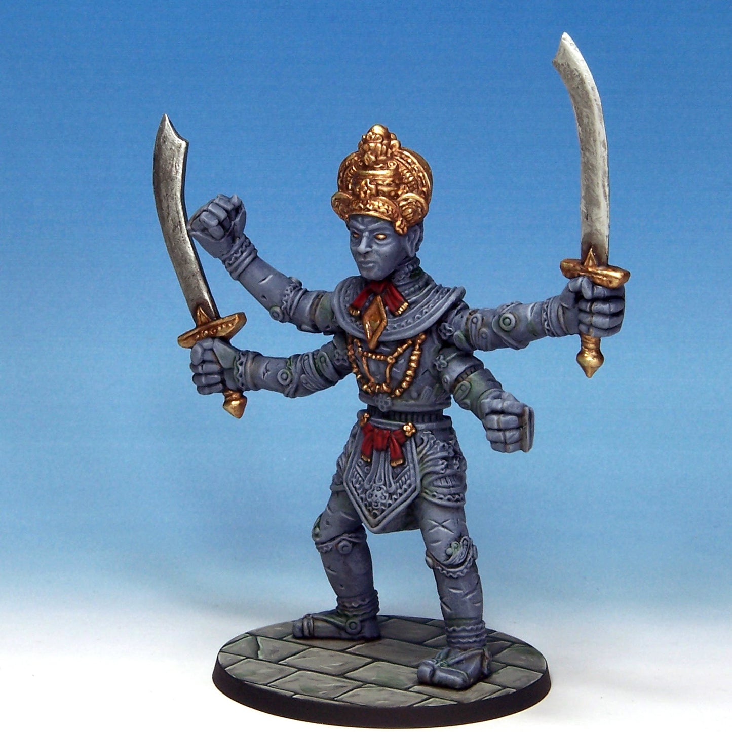 Standing almost the height of three men, The Destroyer is an animated construct created to smash the enemies of S.H.I.V.A. Taking great strides, The Destroyer uses its great scimitars to sweep all before it, and its huge fists to hammer any that remain standing. It is totally without remorse, created only to destroy.