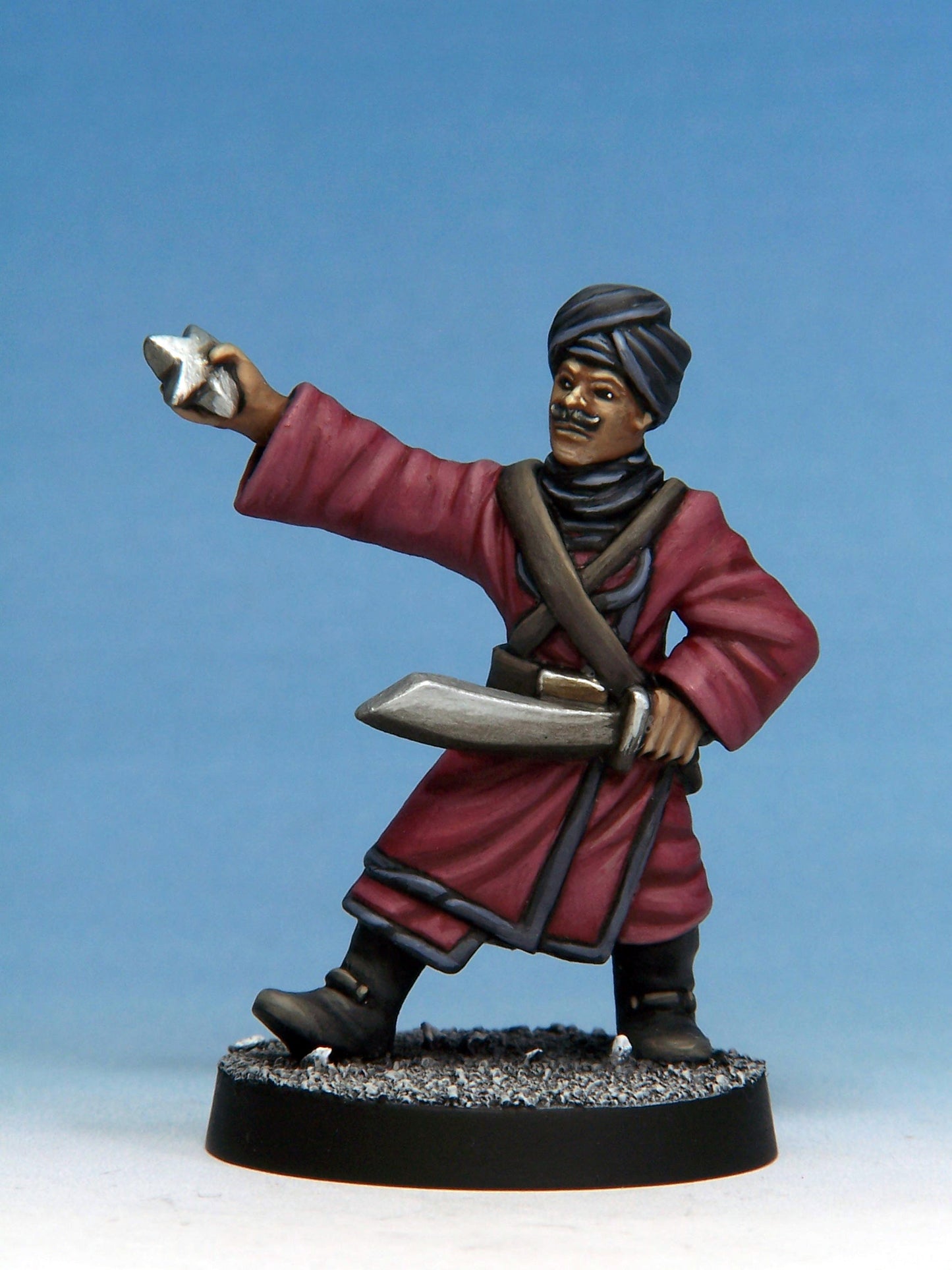 Thuggees are devoted to the art of killing the enemies of SHIVA, striking without mercy and disappearing back into the shadows. Expert masters of sword, throwing weapons and garrottes, Thuggees coat their weapons in poison, such that a mere scratch can be fatal.