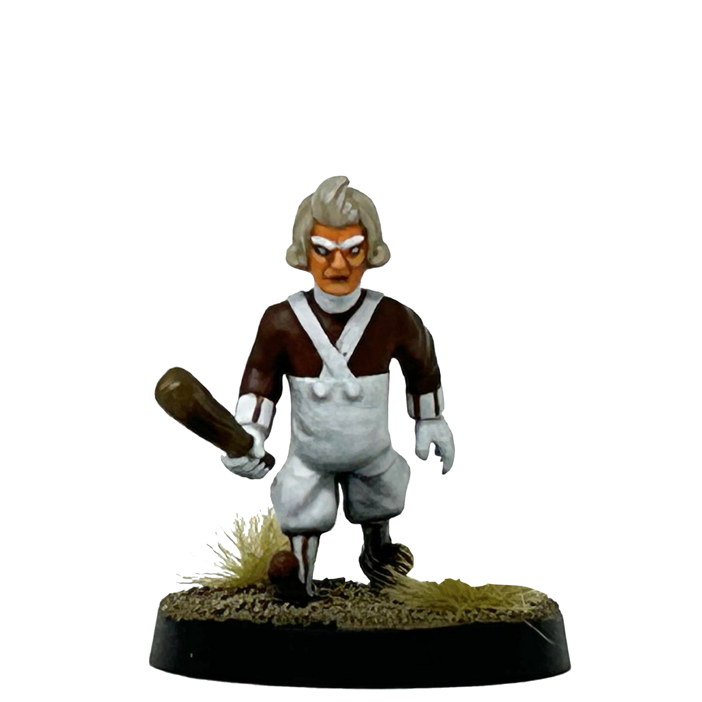Sculpted by Ian Mountain. Cast in white metal. Supplied unpainted with a 25mm slottabase. Painted for display by Ben Brownlie.