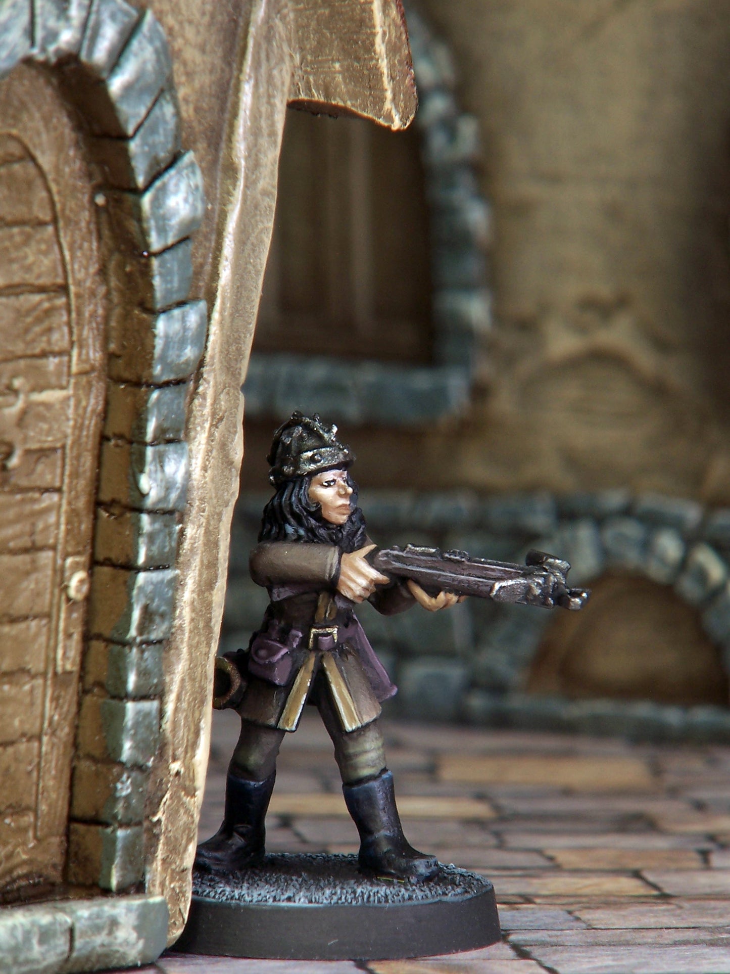 Sculpted by Mark Evans. Cast in white metal. Painted for display by Mystic Spirals. Supplied unpainted and with 25mm round slottabase.