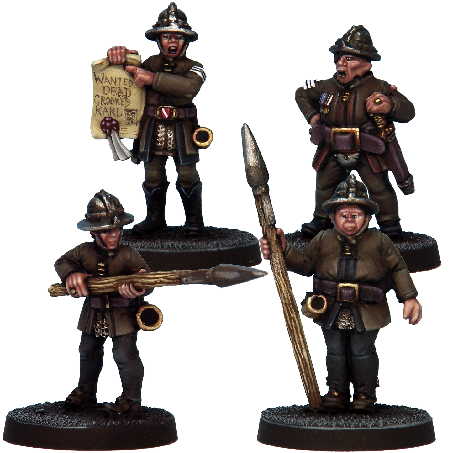 Acting as watchmen and peacekeepers, Guards patrol town streets and castle hallways from their garrisons, warding off miscreants and trouble-makers. Unequipped to fight more formidable foes, such troops are ideal for dealing with drunkards or petty thieves.